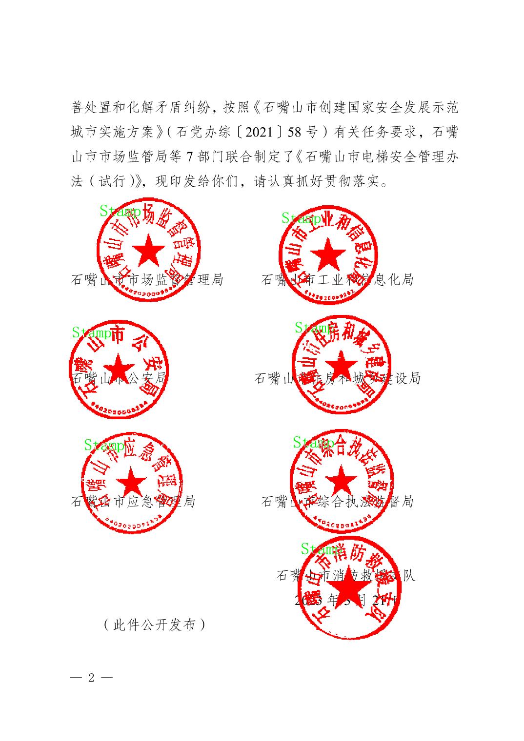 (石市场监管规发〔2023〕1号)石嘴山市市场监督管理局关于印发《石嘴山市电梯安全管理办法(试行)》的通知