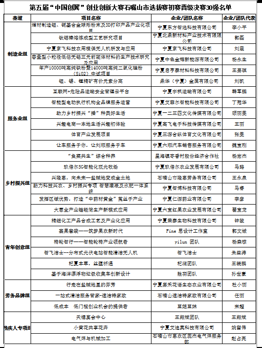 附:晋级第五届“中国创翼”创业创新大赛石嘴山市选拔赛决赛项目名单