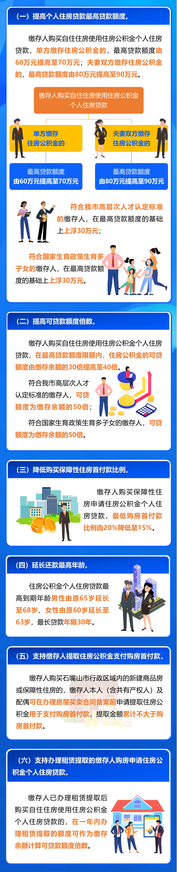 为深入贯彻落实中共中央办公厅、国务院办公厅《提振消费专项行动方案》《全国人大常委会关于实施渐进式延迟法定退休年龄的决定》《国务院关于渐进式延迟法定退休年龄的办法》等文件精神及市委、市政府关于促进房地产市场止跌回稳平稳健康发展工作部署要求,进一步满足缴存人刚性和改善性住房需求,充分发挥住房公积金制度的保障作用,对部分住房公积金政策予以调整。