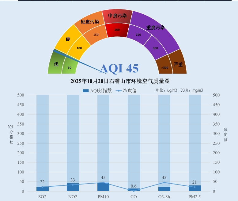 2025年10月20日石嘴山市环境空气质量