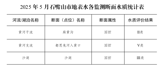 2025年5月,黄河干流石嘴山出境麻黄沟断面为Ⅱ类优水质,黄河支流都思兔河入黄口断面扣除氟化物后为Ⅴ类水质。