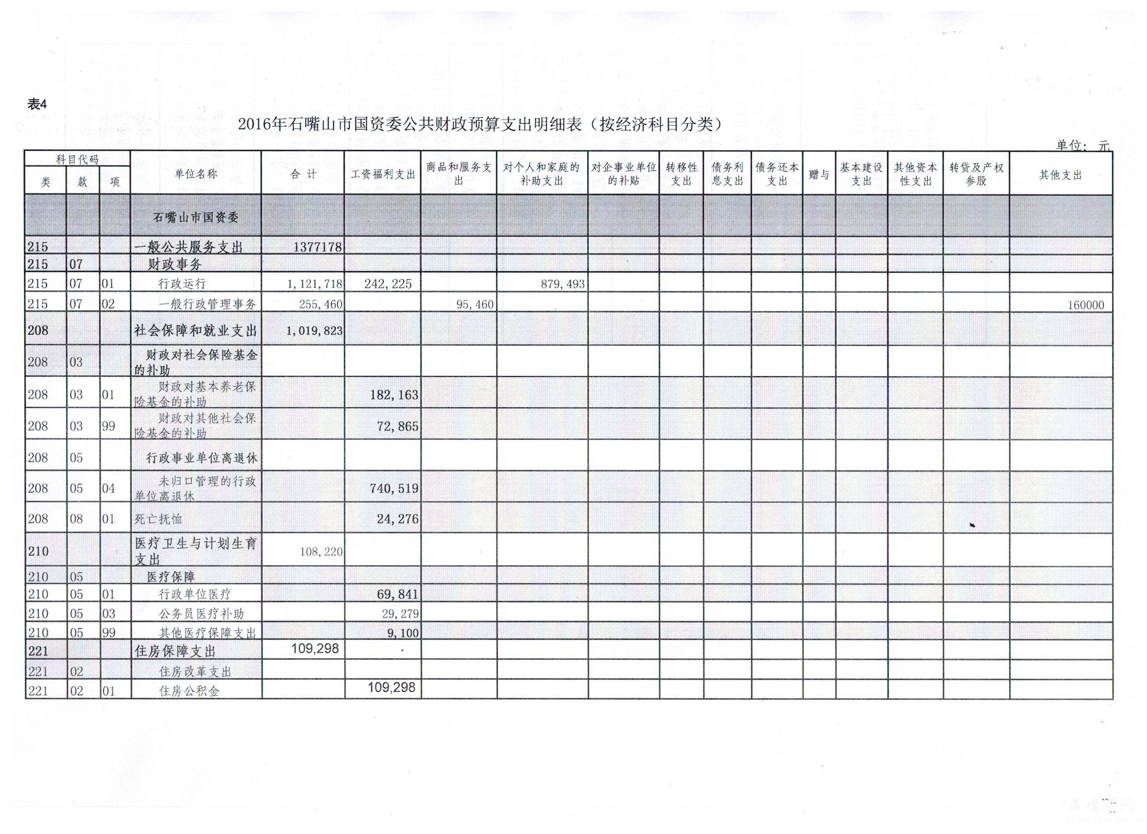 市国资委2016年部门预算信息公开的说明-附表4-2016年石嘴山市国资委公共财政预算支出明细表(按经济科目分类)