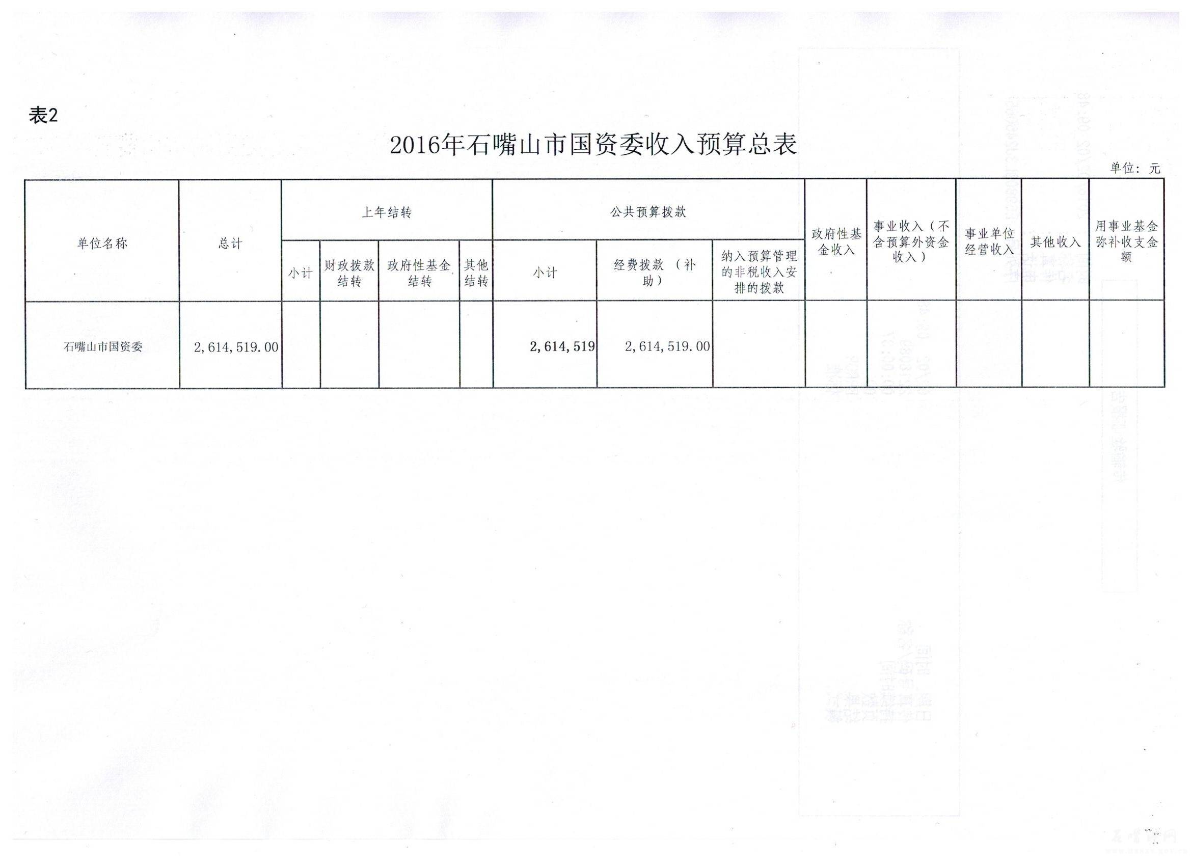 市国资委2016年部门预算信息公开的说明-附表2-2016年石嘴山市国资委收入预算总表