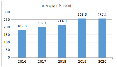 图1-1:2016—2020年石嘴山市发电量情况
