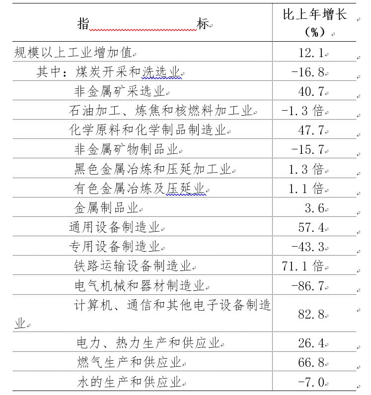 全市实现工业增加值246.01亿元,增长12.0%,其中规模以上工业企业增加值增长12.1%。在规模以上工业增加值中,轻工业增长64.3%,重工业增长11.6%。