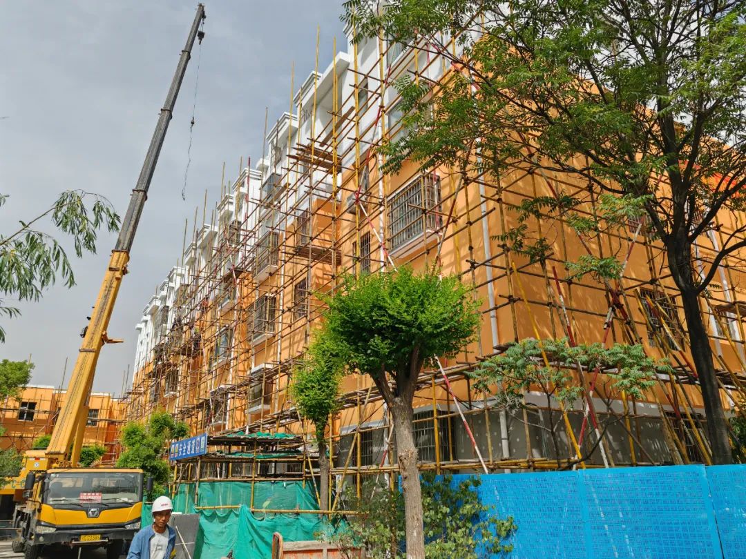 近日,记者来到位于大武口区恒源水岸小区的城镇老旧小区改造工程二标段的项目现场,塔吊林立,机器轰鸣,工人们个个都铆足了干劲。据悉,该小区共改造7栋住宅楼,目前3号楼、5号楼进入外墙刮腻子阶段,7号楼外立面保温改造和屋面防水改造已经完成,其余几栋楼的改造工作也正在同步进行,该标段自4月26日开工,预计7月20日完工。“老旧小区改造是一项重要民生工程,因此在施工过程中,我们严格把控质量关,每一道工序都按照标准执行。同时,合理安排施工进度,在保证安全的前提下,加快施工,争取让居民早日享受到改造后的成果。”宁夏澜峰建筑工程有限公司项目经理胡晓伟说。