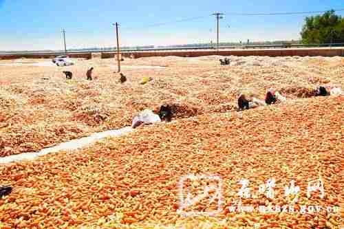 10月11日,惠农区简泉农场三队村民在晾晒玉米。金秋时节,我市农民晾晒玉米、辣椒等农产品,丰收的喜悦扑面而来。记者 赖盛龙 摄