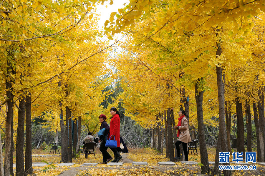 银杏园:金叶摇落故园秋。新华网 姜雪城 摄