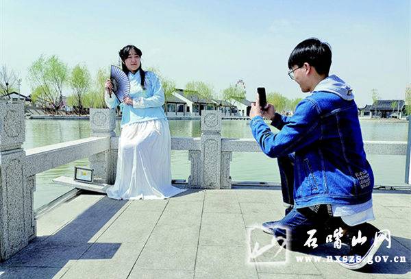 4月7日,市民在华夏奇石山文化旅游区赏景、拍照。