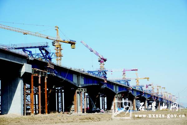 石嘴山红崖子黄河公路大桥项目是我市重点项目之一,累计完成投资9.76亿元,今年已完成投资2800万元,计划今年年底建成,目前正在实施主桥及跨堤桥上部结构。该项目将宁夏平罗工业园区与我市干线公路网连接,对完善国家及区域干线公路网络,优化沿黄经济区跨河通道布局,畅通向东通道,加强黄河两岸经济社会的联系,加快区域资源开发和产业发展具有重要意义。记者 雷永福 摄