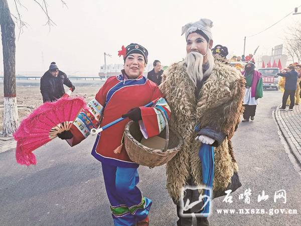 上午9时30分,伴随着锣鼓点,社火队伍边走边表演,扭秧歌、舞狮子,表演者个个精神抖擞、神采飞扬。威风凛凛的狮子、滑稽搞笑的媒婆、婀娜多姿的秧歌队,吸引了众多游客驻足观看,大家时不时拿起手机拍照留念,记录这美好的时刻。(记者 李薇 米振卿 赖盛龙 文/图)