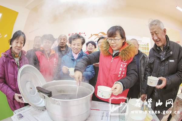 1月2日,大武口区朝阳街道办事处怡心社区工作人员为辖区居民盛腊八粥。当日,该社区举办了“浓情腊八节 有粥有温情”腊八节活动,丰富辖区居民精神生活的同时,为喜迎新春佳节增添更多年味、趣味。
