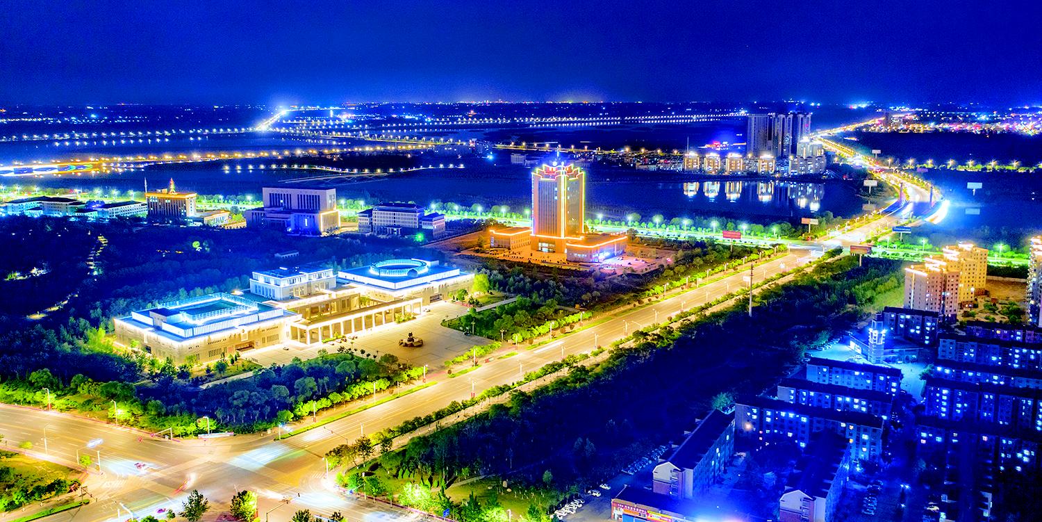 夏夜,华灯初上,石嘴山褪去了白天的喧嚣,一条条街道变成了皓光闪耀的银河,“高颜值”的创新型山水园林工业城市在灯光和夜光的勾勒下极具魅力(无人机照片)。近年来,我市大力推进城市特色建设,不断完善城市基础设施,环境更加怡人,城市更加宜居。(记者 刘宵华摄)