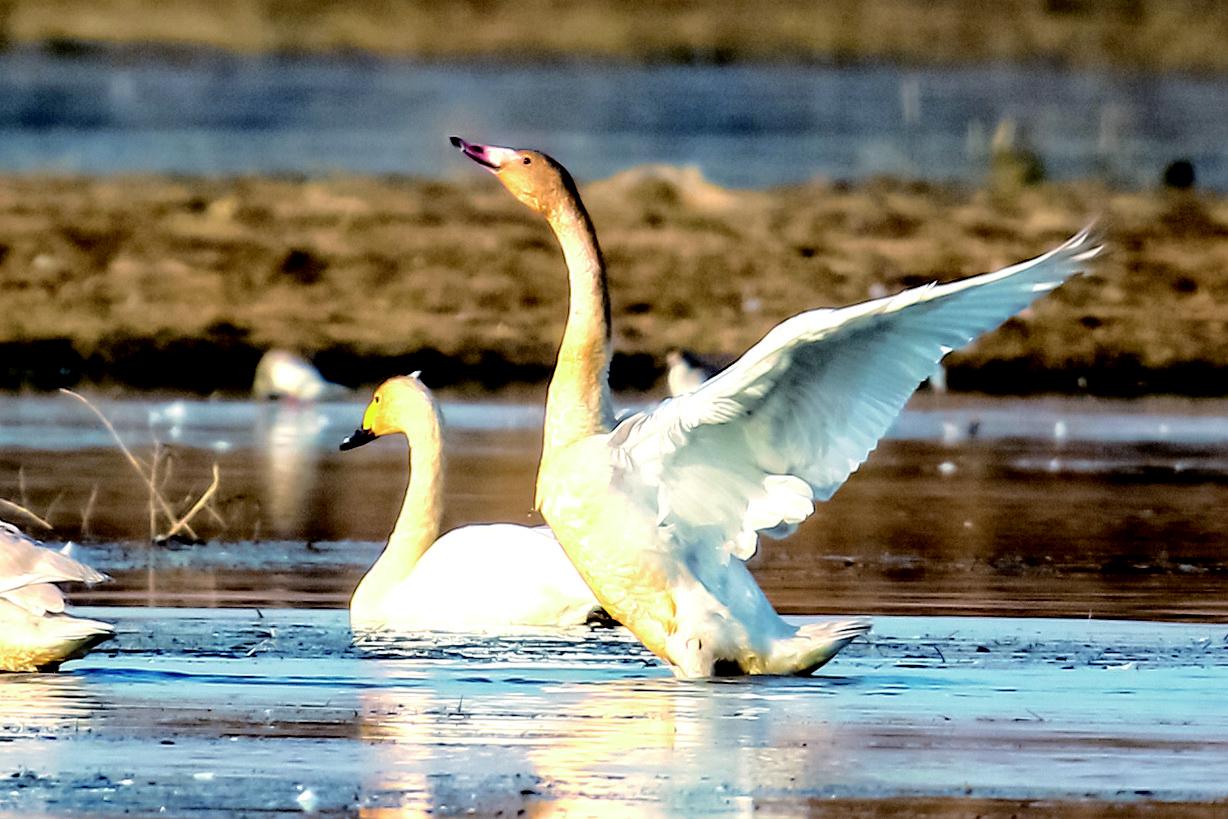 晚秋时节,正值候鸟迁徙季节,大批天鹅、豆雁、白鹭、琵琶鹭、红嘴鸥等候鸟,聚集在星海湖国家湿地公园停留觅食。一时间,飞鸟翔集,水中嬉戏,静谧而又美好。据悉,候鸟在此休整补给后,将迁徙南方过冬。(通讯员 哈学军摄)