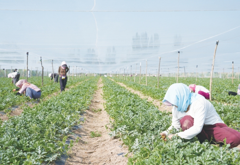 近日,在惠农区燕子墩乡路家营村的200亩制种蔬菜基地内,村民正在给西瓜人工授粉。
