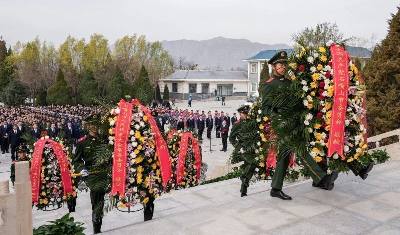 市四套班子领导、自治区退役军人事务厅干部职工、三县区主要负责同志及代表、市直各部门负责同志及代表、退役军人代表、驻石部队代表、公安干警代表、法检两院代表、烈士遗属、志愿者代表和学校师生代表等参加仪式。
