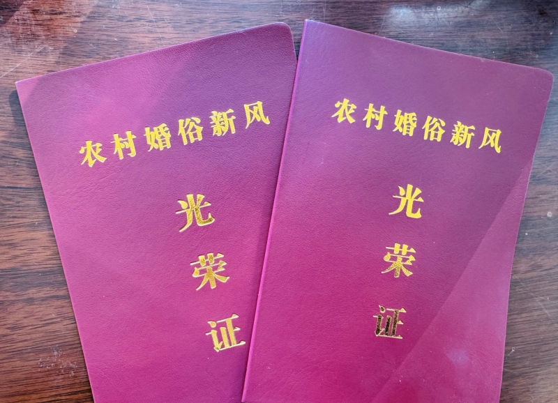 颁发农村婚俗新风光荣证。