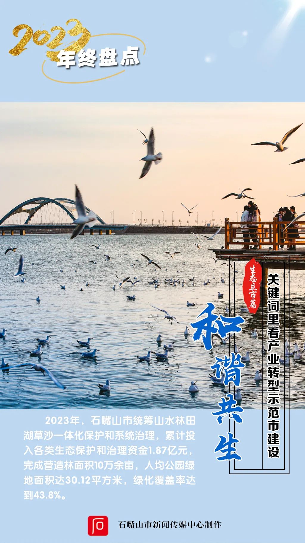 人不负青山,青山定不负人。放眼未来,我市将继续坚持生态立市不动摇,坚定不移走生态优先、绿色发展之路,相信在全市人民的共同努力下,必将绘就一幅天更蓝、地更绿、水更清、人与自然和谐共生的美丽石嘴山新画卷。(记者 周丽华 马正礼/文 刘宵华/图)