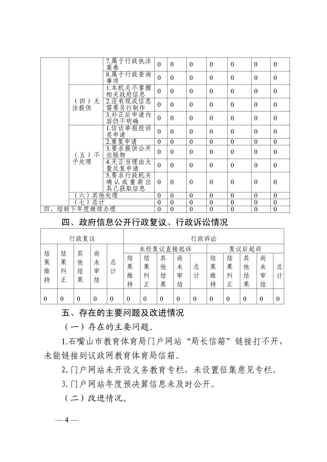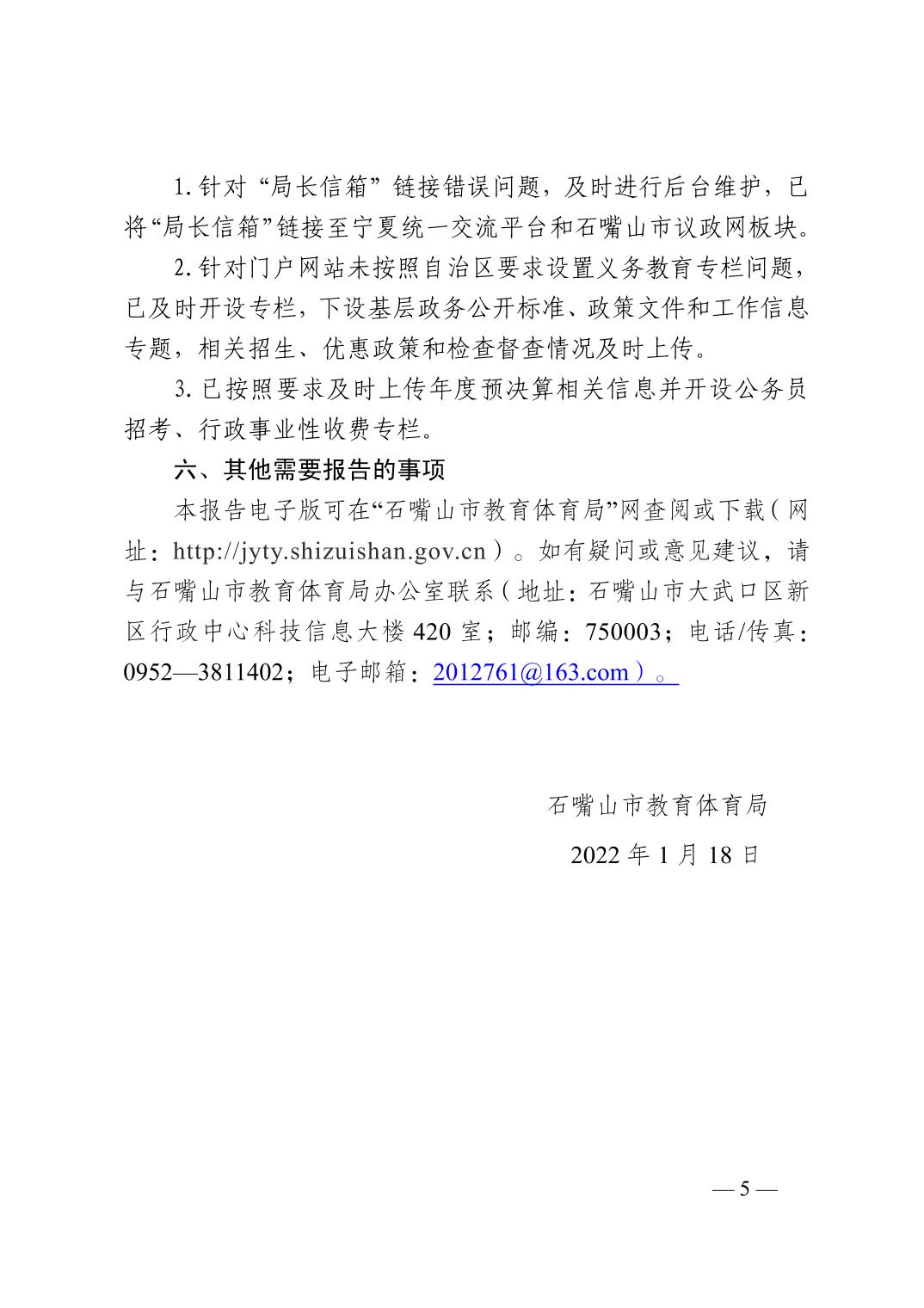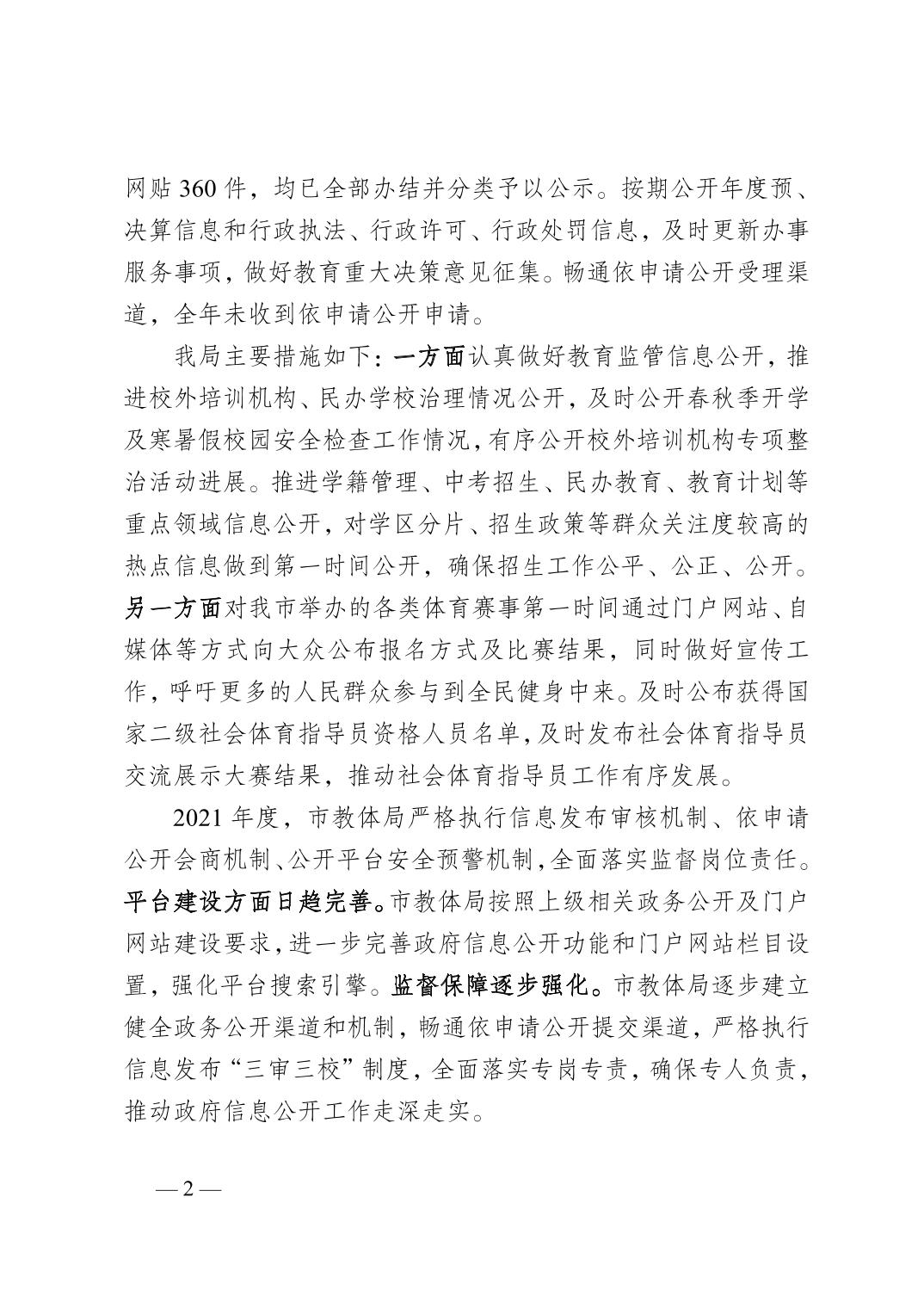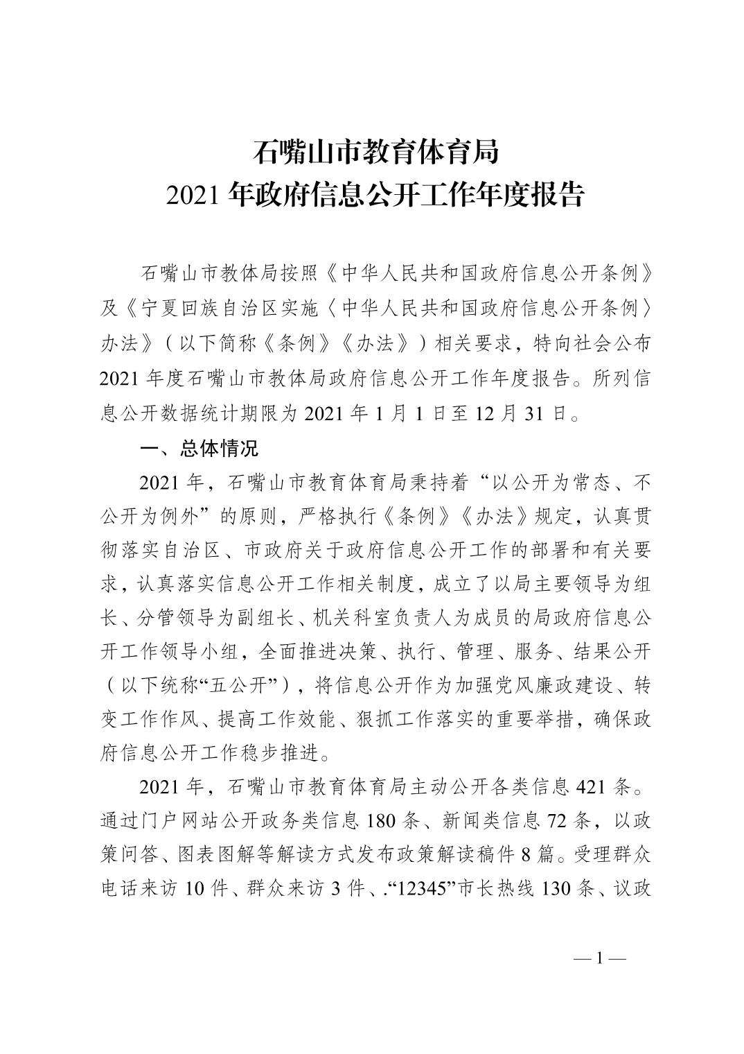 石嘴山市教育体育局2021年政府信息公开工作年度报告