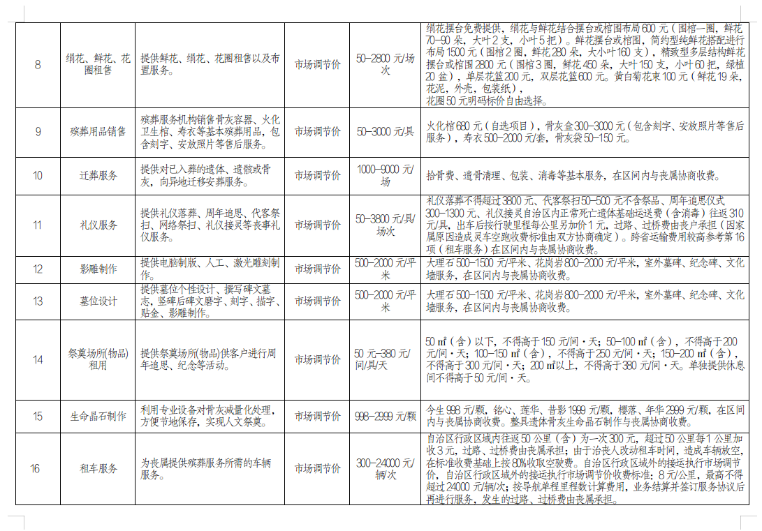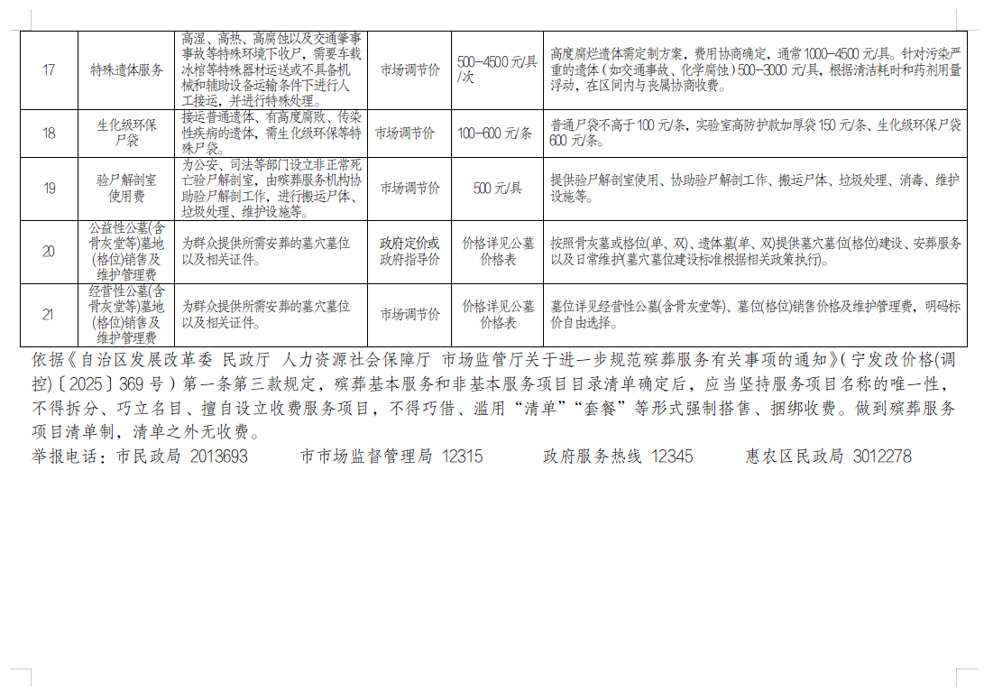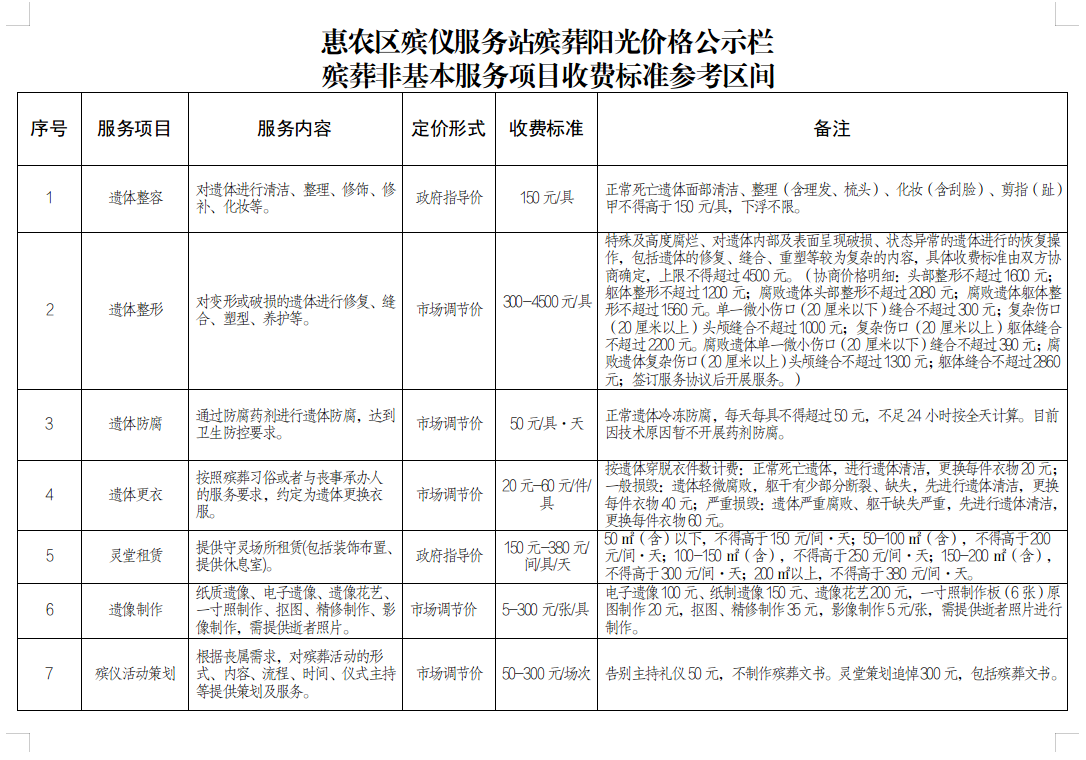 惠农区殡仪服务站殡葬阳光价格公示栏殡葬非基本服务项目收费标准参考区间