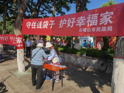 2023年是全国防范非法集资宣传月活动的第十一年,为进一步推动《防范和处置非法集资条例》落实落细,严厉打击非法集资活动,加强防范非法集资宣传教育,巩固打击整治养老诈骗专项成果,切实提高群众对非法集资活动的风险意识和养老诈骗防范能力,按照全市统一部署,6月15日上午,市民政局积极组织人员在大武口区青山公园开展以“守住钱袋子·护好幸福家”为主题的宣传活动。