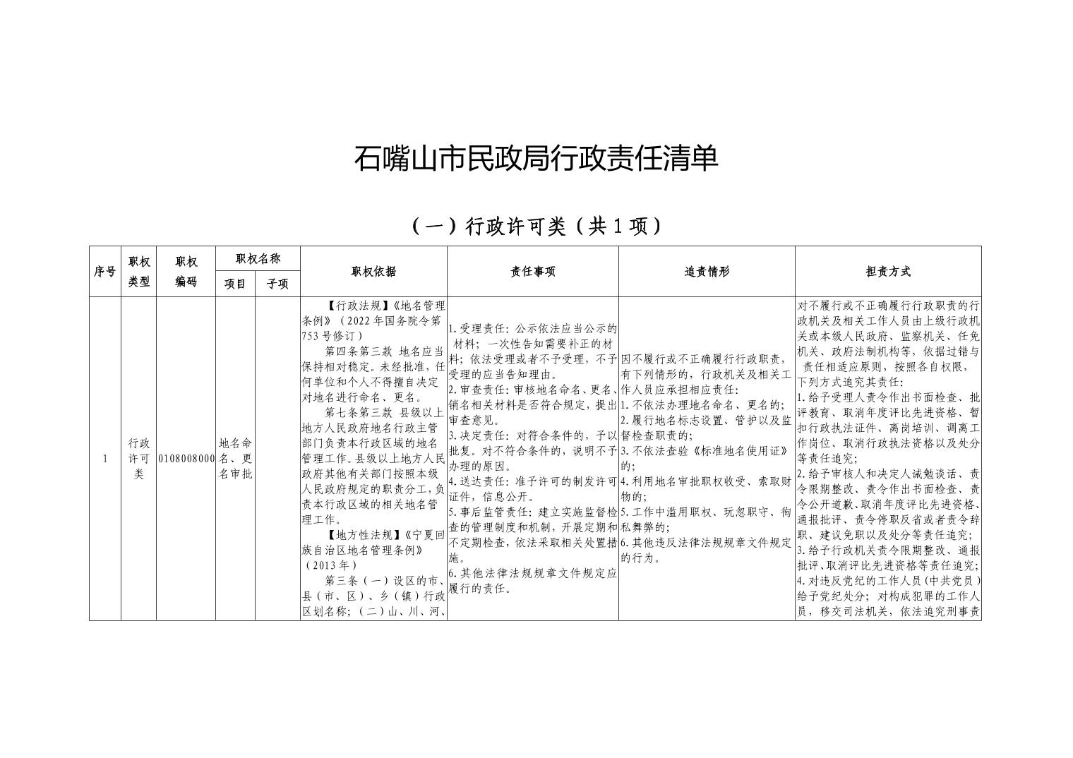 石嘴山市民政局行政责任清单