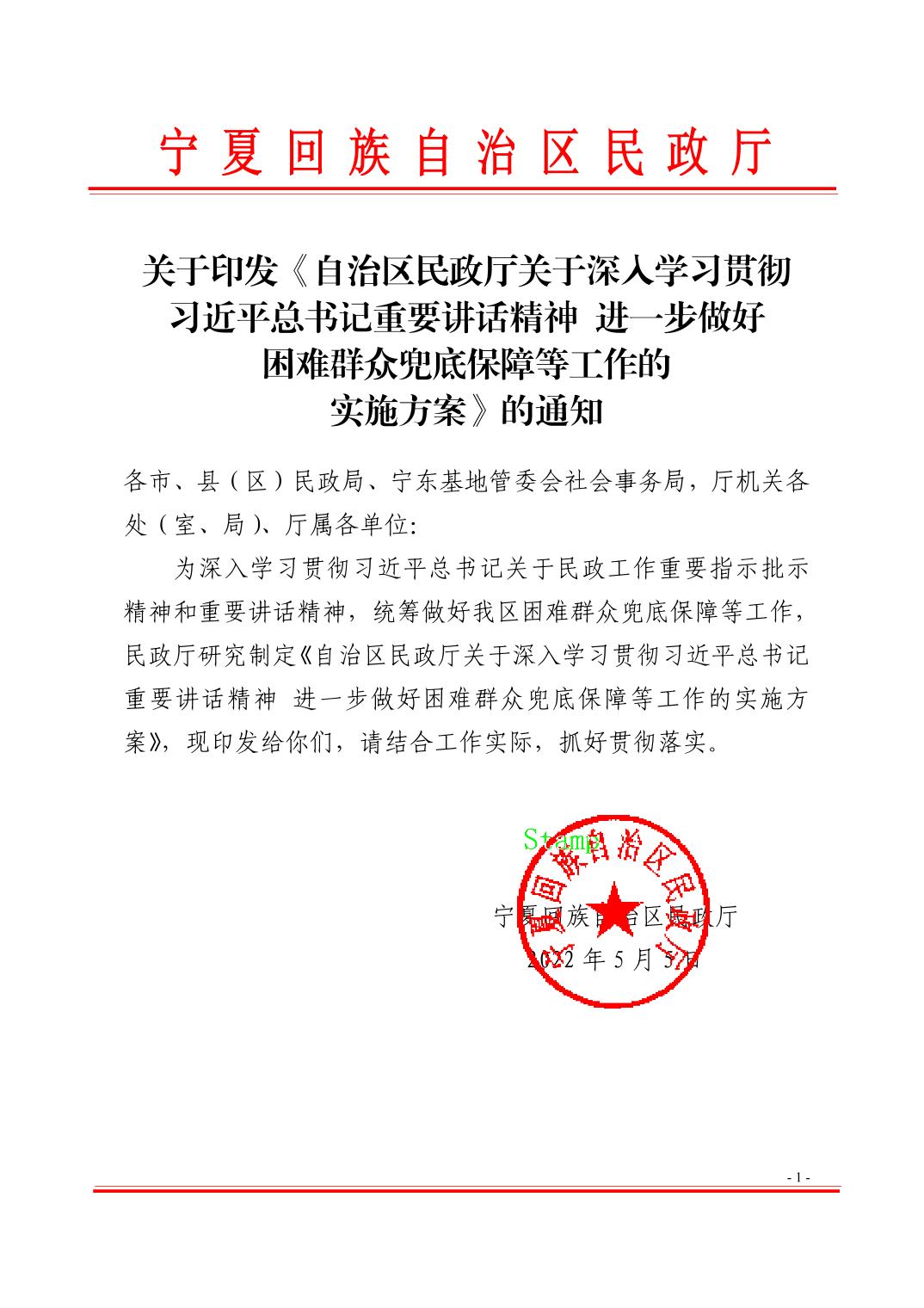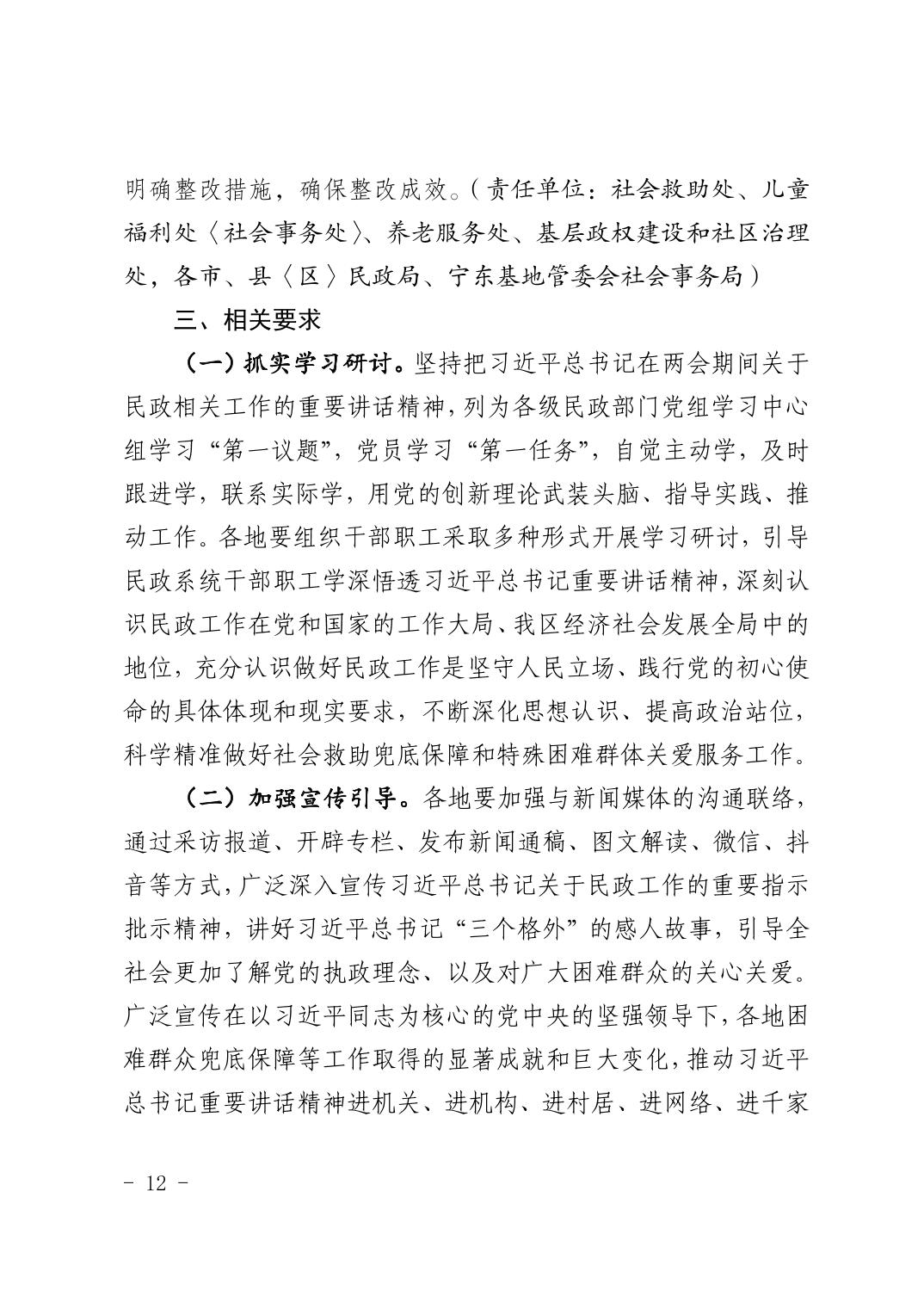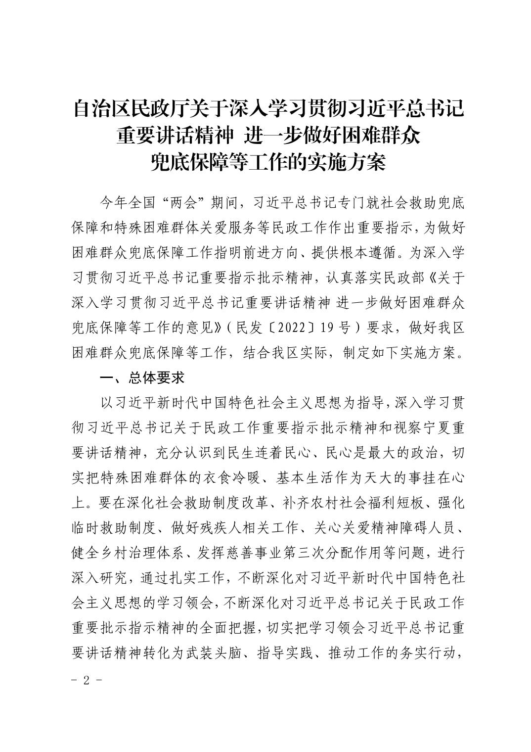 关于印发《自治区民政厅关于深入学习贯彻习近平总书记重要讲话精神 进一步做好困难群众兜底保障等工作的实施方案》的通知