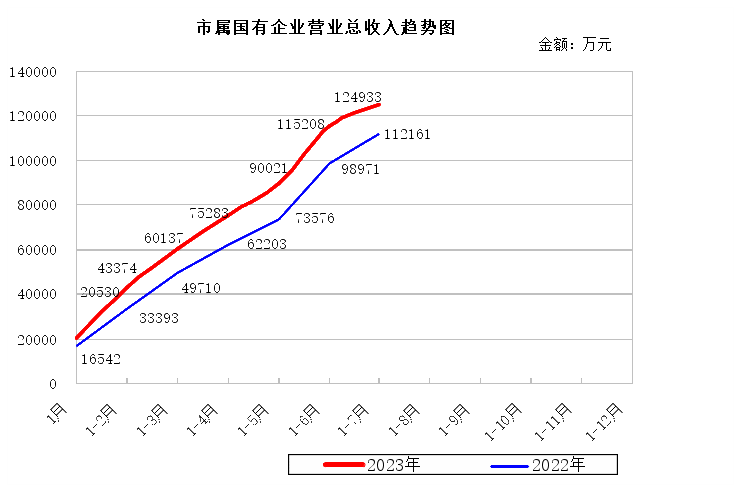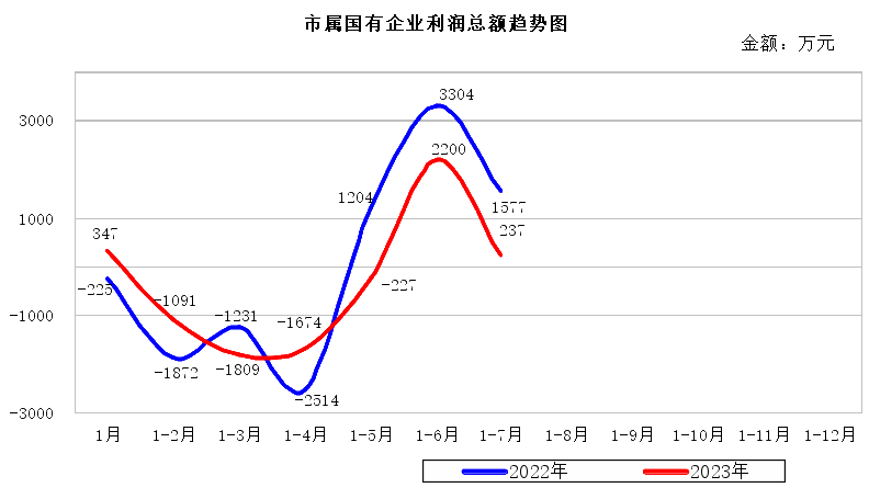 1-7月份,全市国有企业经济运行平稳,营业总收入继续保持增长态势,但经营整体处于增亏状态。7月末,全市41户一级国有企业(因股权结构变更,石嘴山市星海湖宾馆有限公司自本月起作为二级核算单位,纳入石嘴山市矿业(集团)有限责任公司统计范围,退出石嘴山市星瀚市政产业(集团)有限公司统计范围)累计实现营业总收入145,742万元,同比增长8%;盈亏相抵累计亏损4,120万元,同比增亏3.75倍;成本费用总额159,077万元,同比增长11%;已交税费8,881万元,同比增长11%;截至7月底,资产总额1,453,920万元,同比减少28,833万元;净资产548,950万元,同比增长3,128万元;研发经费投入强度0.18%,同比增长0.04个百分点;净资产收益率-1.0%,同比下降0.6个百分点;资产负债率62%,同比下降1个百分点。
