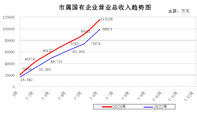 (一)营销情况。6月末,15户市国资委监管企业累计实现营业总收入115,208万元,同比增加16,237万元、增长16%。其中星瀚集团、矿业集团、九柱集团等5户企业营业总收入同比实现增长,增长额为16,707万元,矿业集团和九柱集团占增长额的93%。增长的主要原因:一是九柱集团结转玖裕臺房屋销售及工程进度收入;二是矿业集团所属广源通公司煤炭销售业务量同比增加。