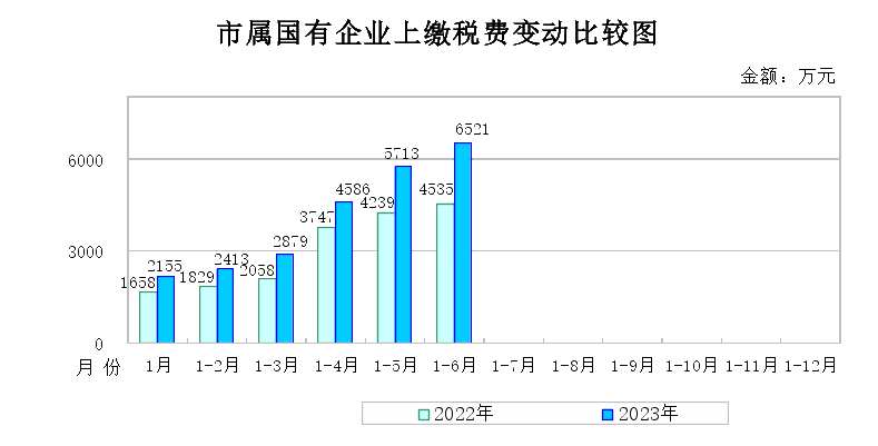 (四)税费上缴情况。6月末,15户市国资委监管企业累计上缴税费6,521万元,同比增加1,986万元、增长44%,主要是星瀚集团同比企业所得税及增值税增加。星瀚集团、矿业集团、九柱集团、善道集团4户企业累计上缴税费6,233万元,占市国资委监管企业上缴税费总额的96%。
