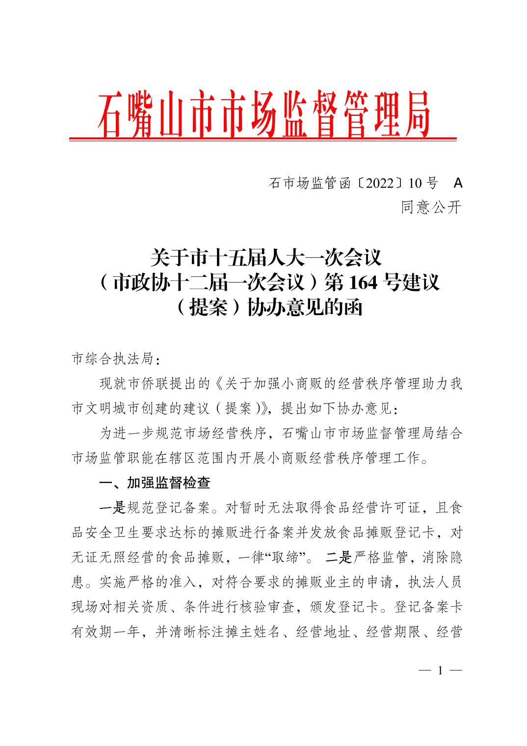 关于市十五届人大一次会议(市政协十二届一次会议)第164号建议(提案)协办意见的函