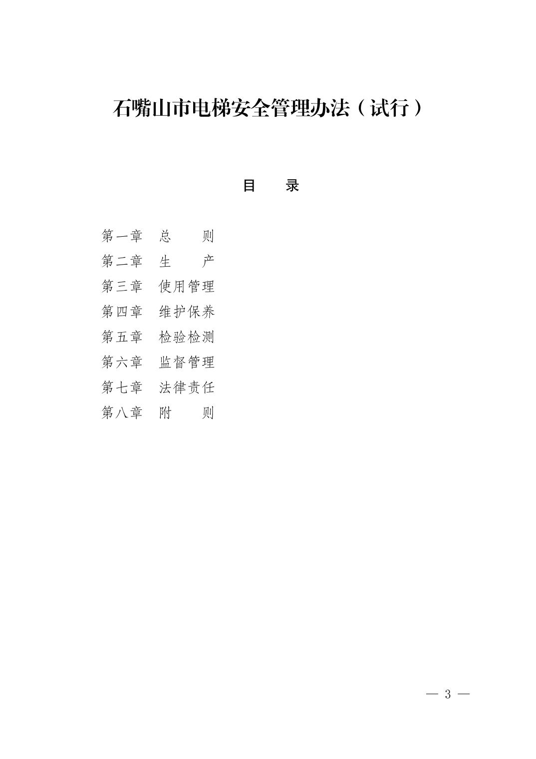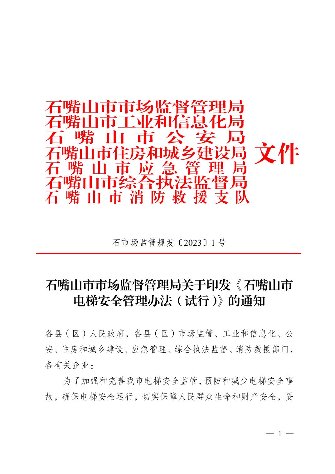 (石市场监管规发〔2023〕1号)石嘴山市市场监督管理局关于印发《石嘴山市电梯安全管理办法(试行)》的通知