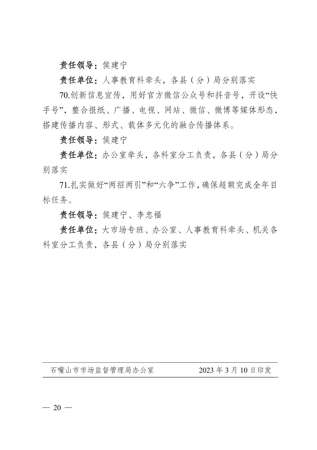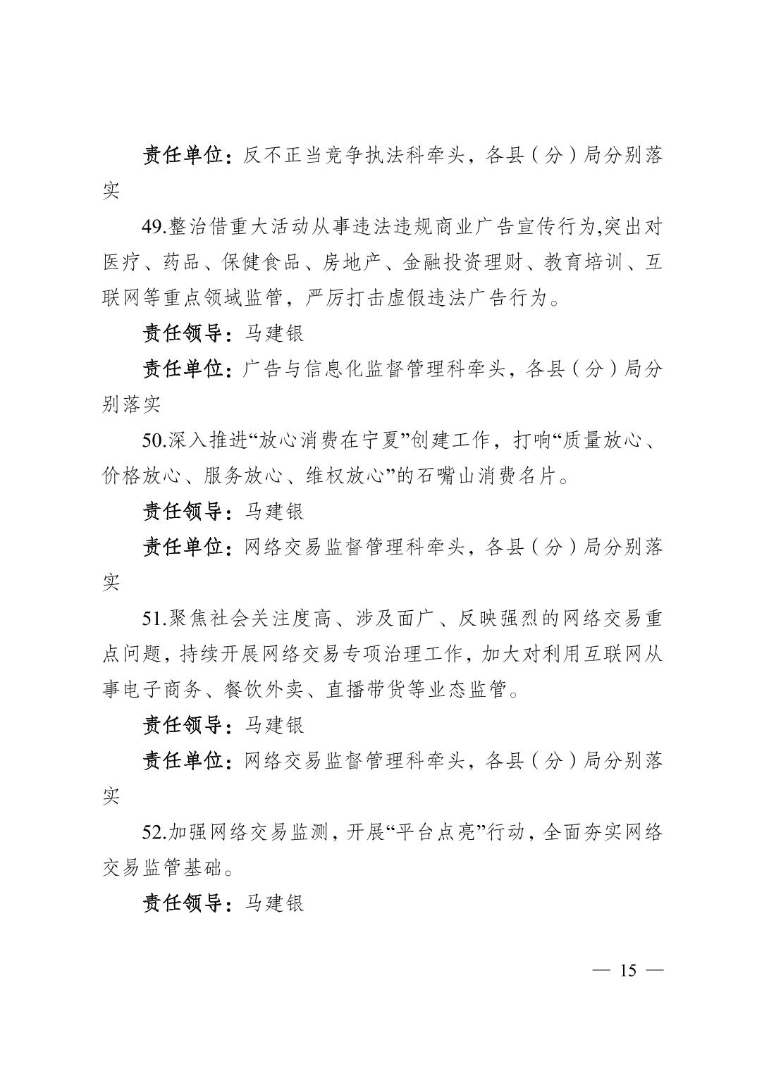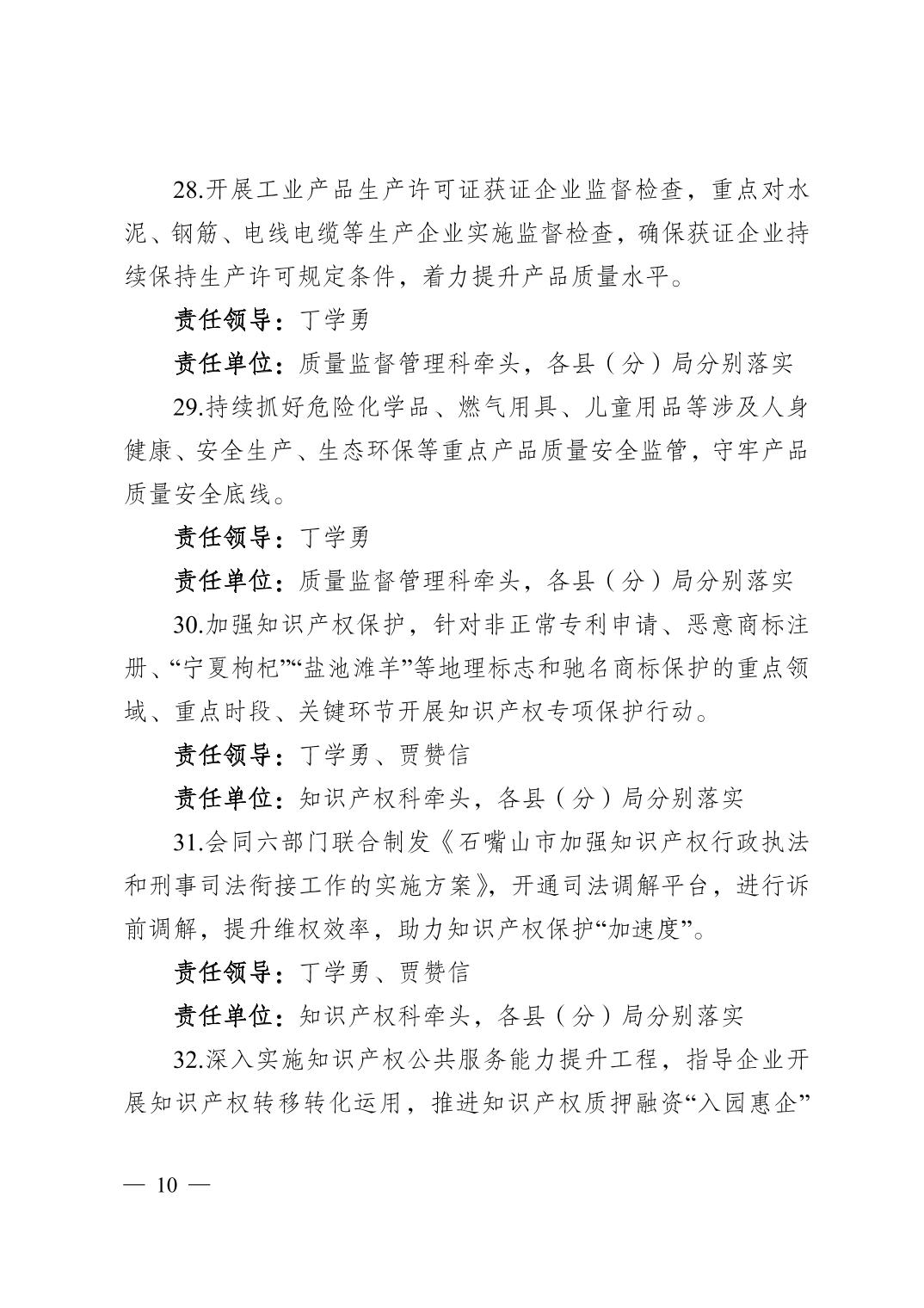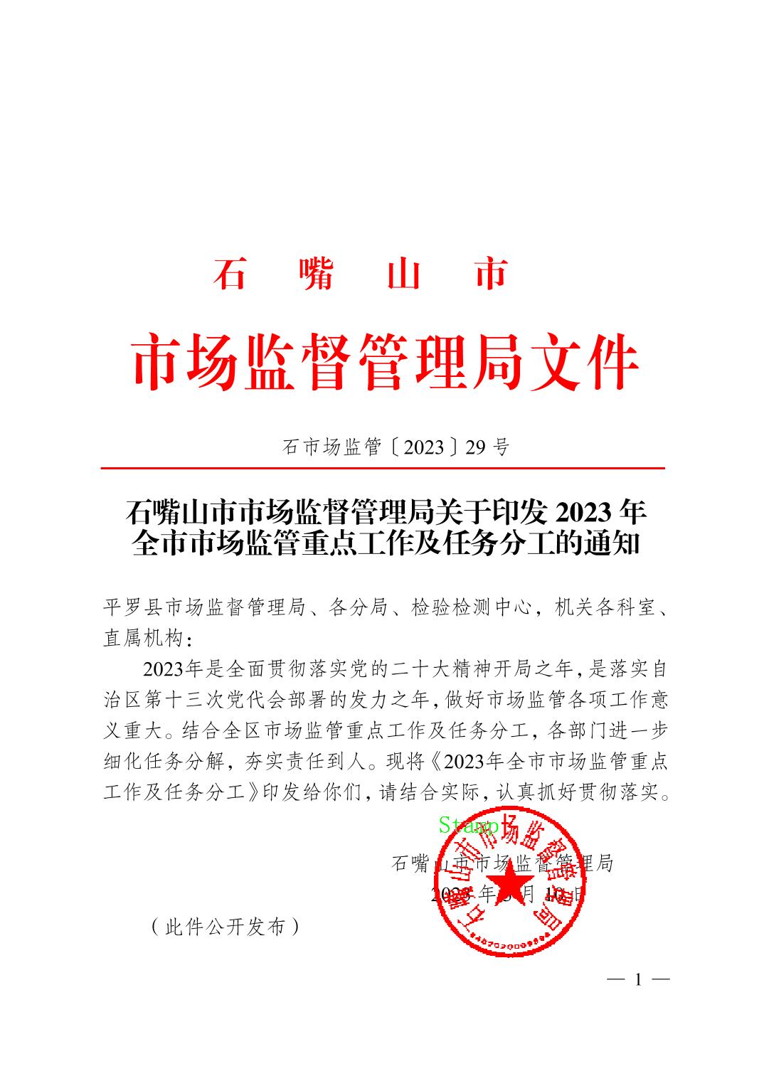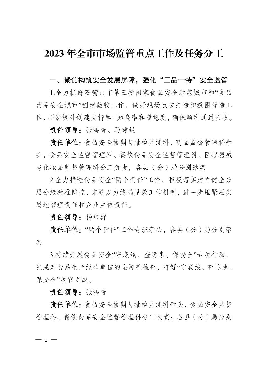 石嘴山市市场监督管理局关于印发2023年全市市场监管重点工作及任务分工的通知