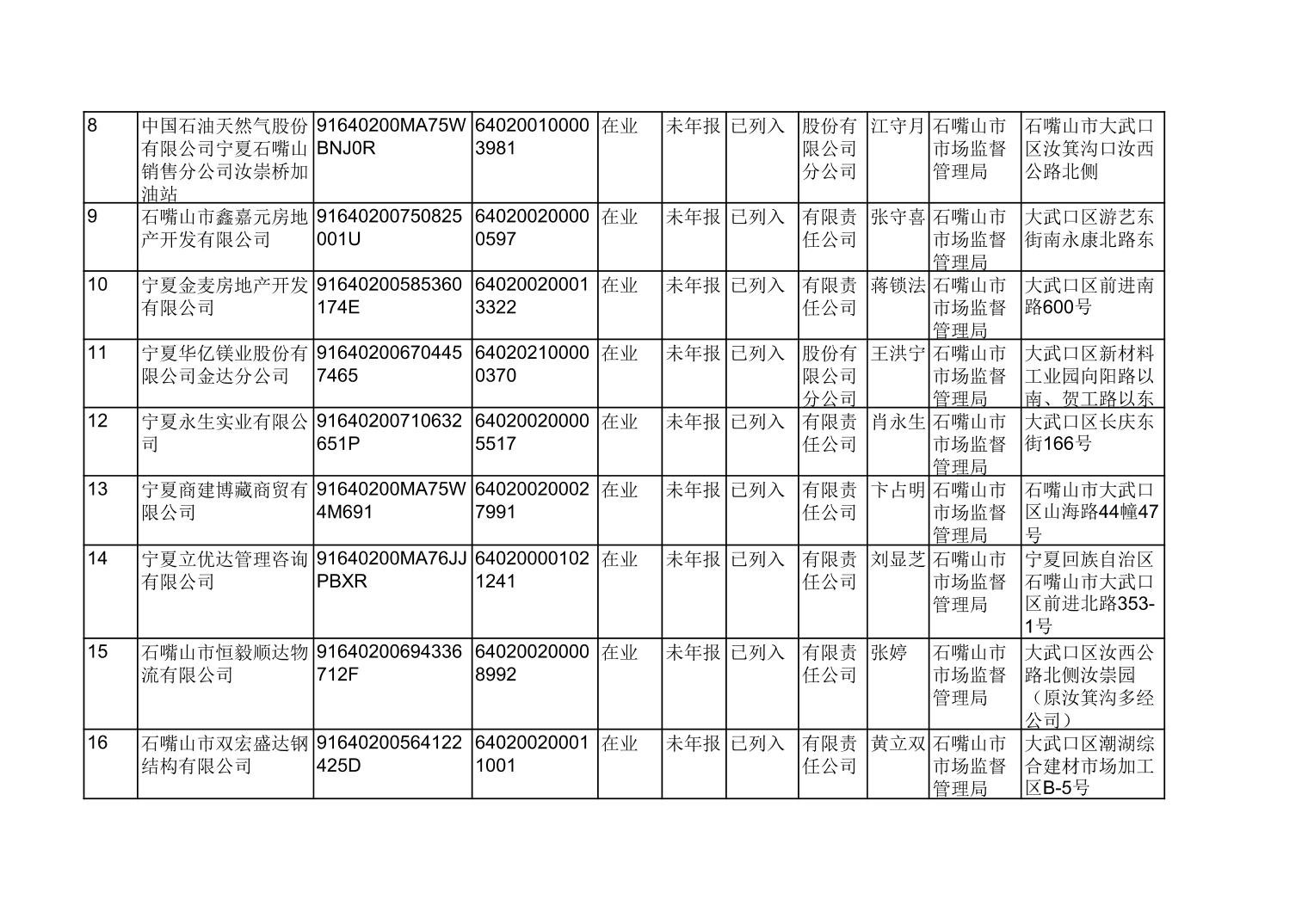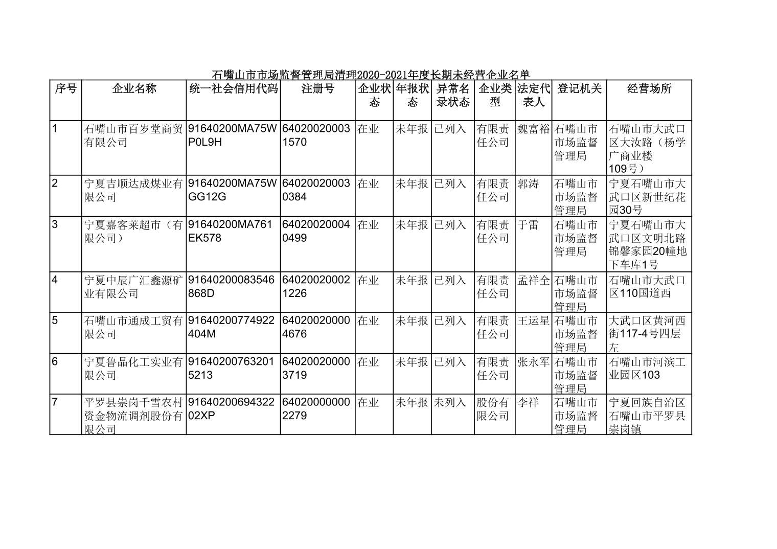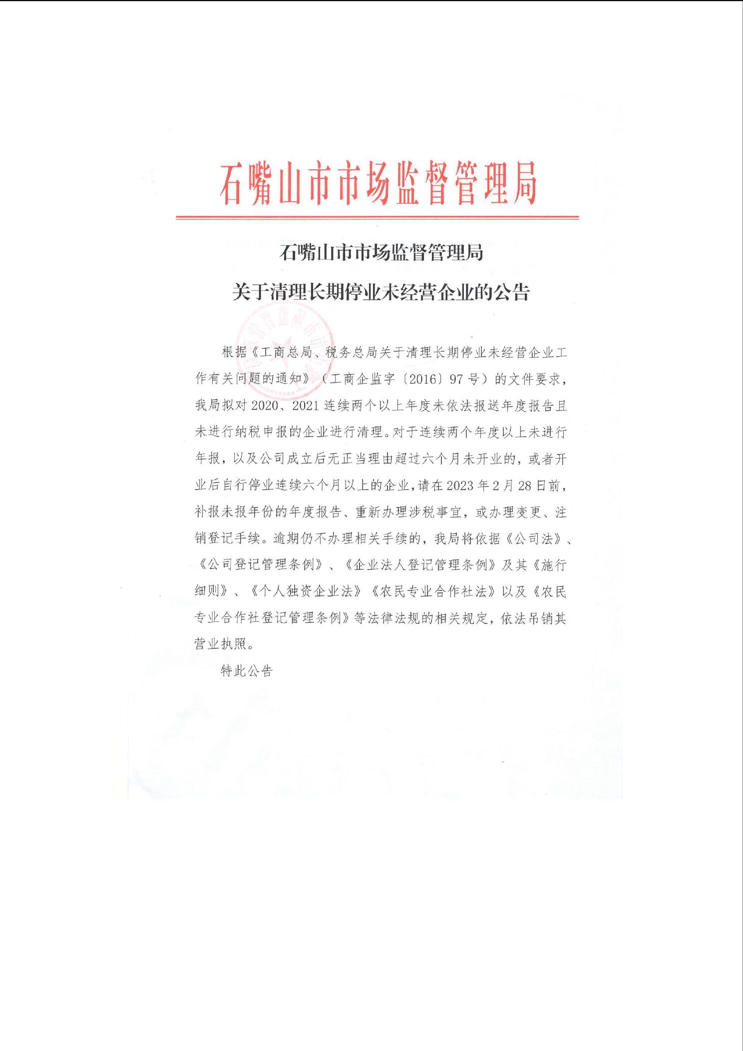 石嘴山市市场监管局关于清理长期停业未经营企业的公告