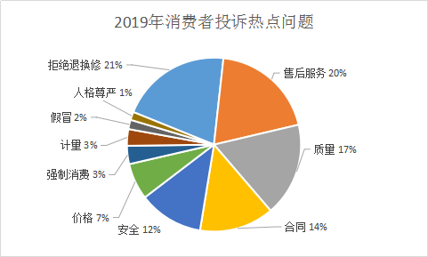 商家不依法履行“三包责任”、质量问题、售后服务、价格及电梯安全等问题,是引发投诉的主要原因。预付卡消费引发的合同问题、停车收费价格、强制消费及人格尊严等问题呈上升趋势,反映出市场监管部门机构改革及“五线合一”后,职能增加、业务量扩增使投诉量攀升,投诉涉及面更广、投诉问题更加多元化,也反映出消费者的依法维权意识不断提升。