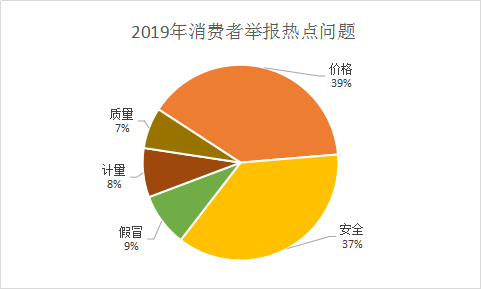 2019年共受理消费者举报976件,占受理总量的18.13%,同比增长154.17%。其中:涉及商品问题的414件;服务类562件。其中:属实件数461件,立案10件,属实率47.32%。举报不实515件,占受理总量的52.77%。按照举报问题分类,排在前五位的是:价格问题175件、安全问题163件、假冒39件、计量36件、质量30件,分别占举报总量的17.93%、16.70%、4%、3.67%、3.1%。