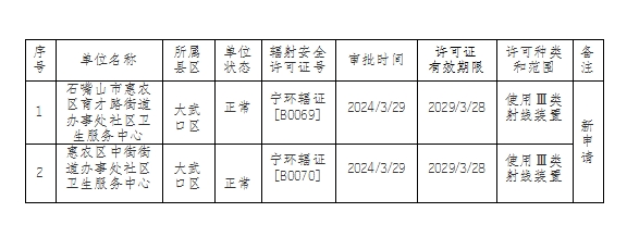 市生态环境局2024年3月辐射安全许可证审批情况公示