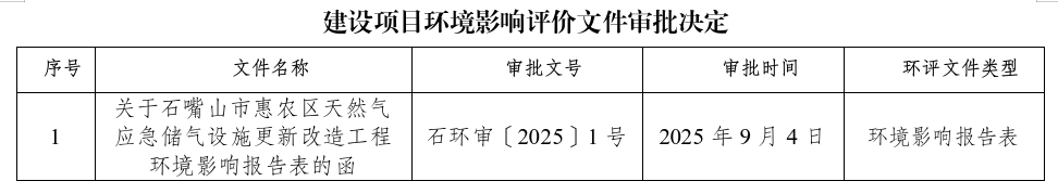 石嘴山市生态环境局关于2025年9月5日作出的建设项目环境影响评价文件审批决定的公告
