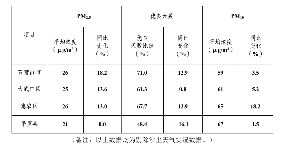 2025年5月石嘴山市及三县(区)环境空气质量主要指标