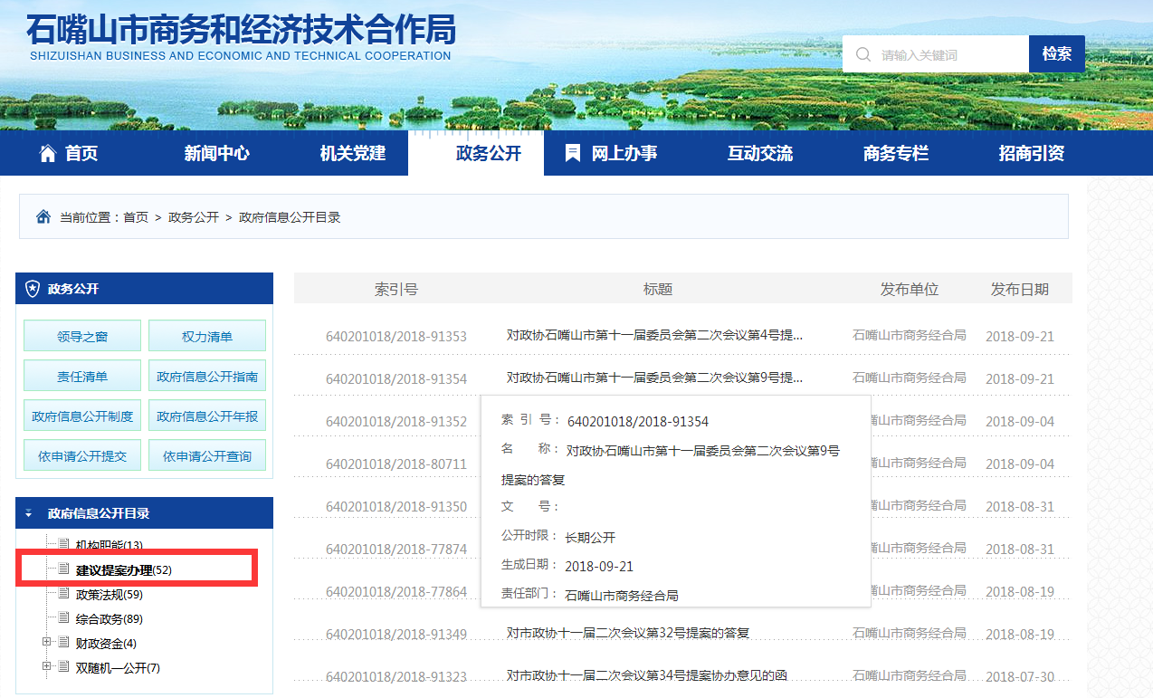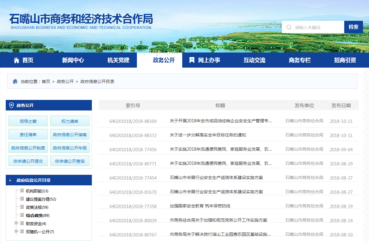 2018年以来,市商务局主要通过局网站、“石嘴山贸促”微信公众号两个途径主动公开政府信息。其中:局网站设置专题专栏30个,公开各类政府信息448条,含概况类信息65条、政务动态信息339条,信息公开目录更新88条;微信公众号更新信息59条,主要为外经外贸、贸促领域政策动态信息。