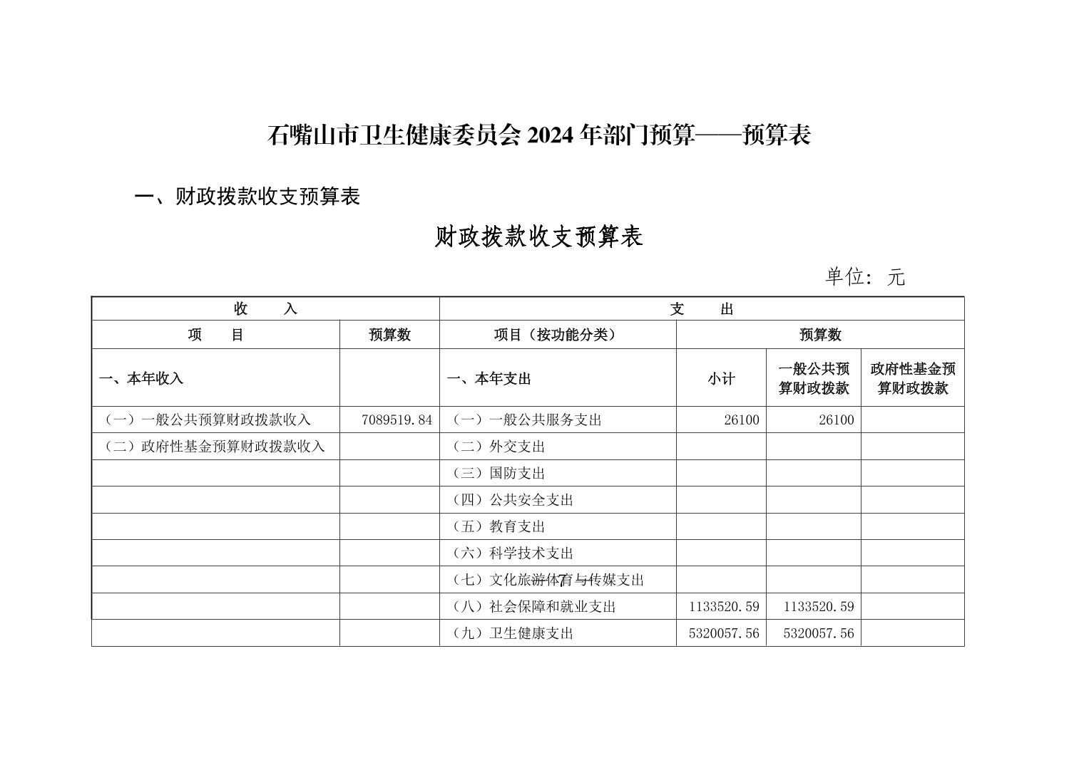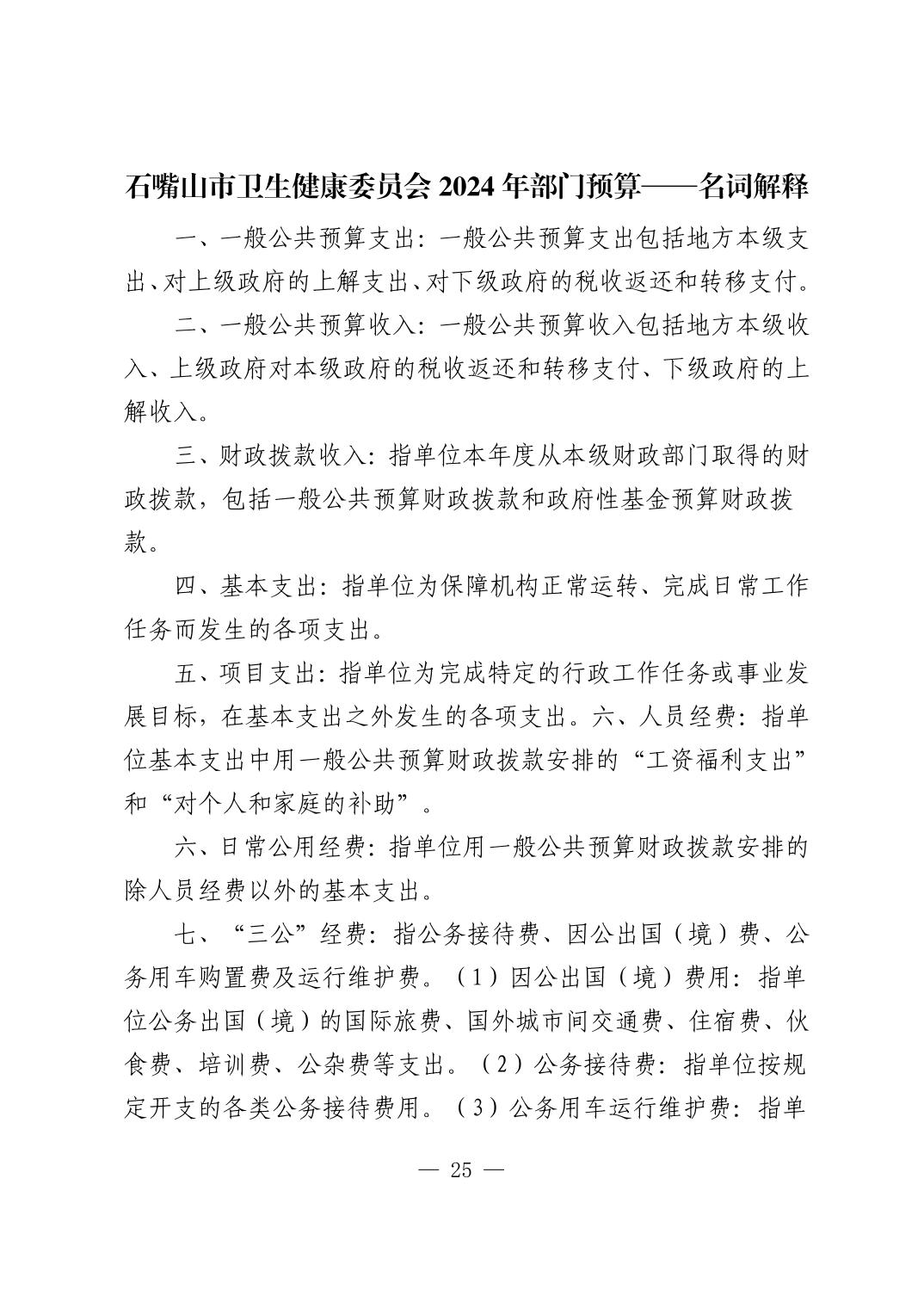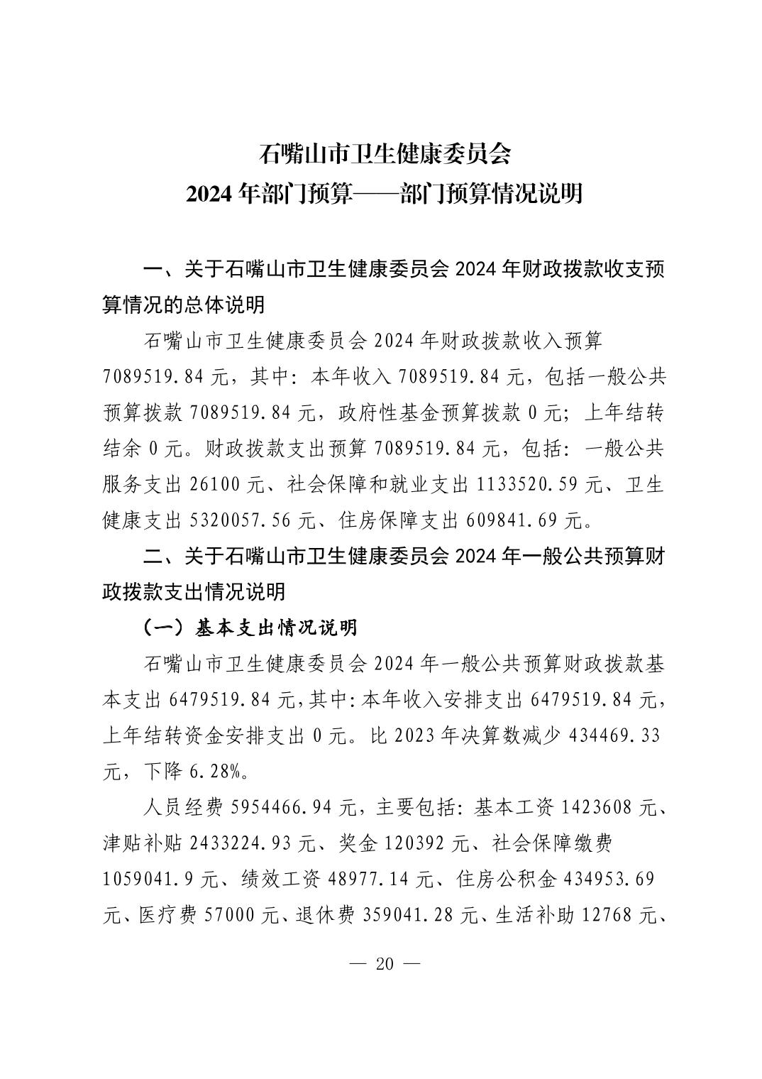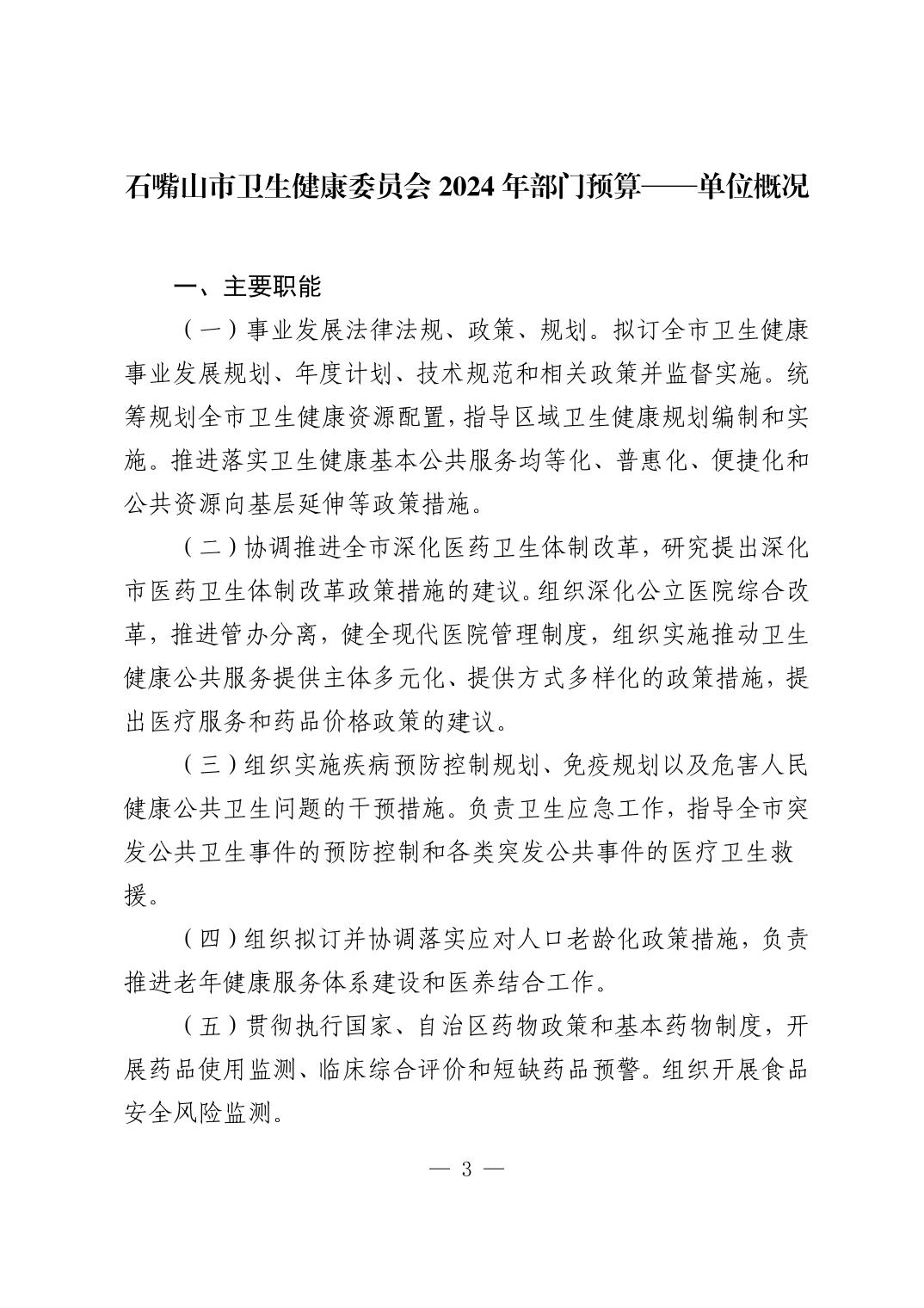 石嘴山市卫生健康委员会(市本级)2024年部门预算公开