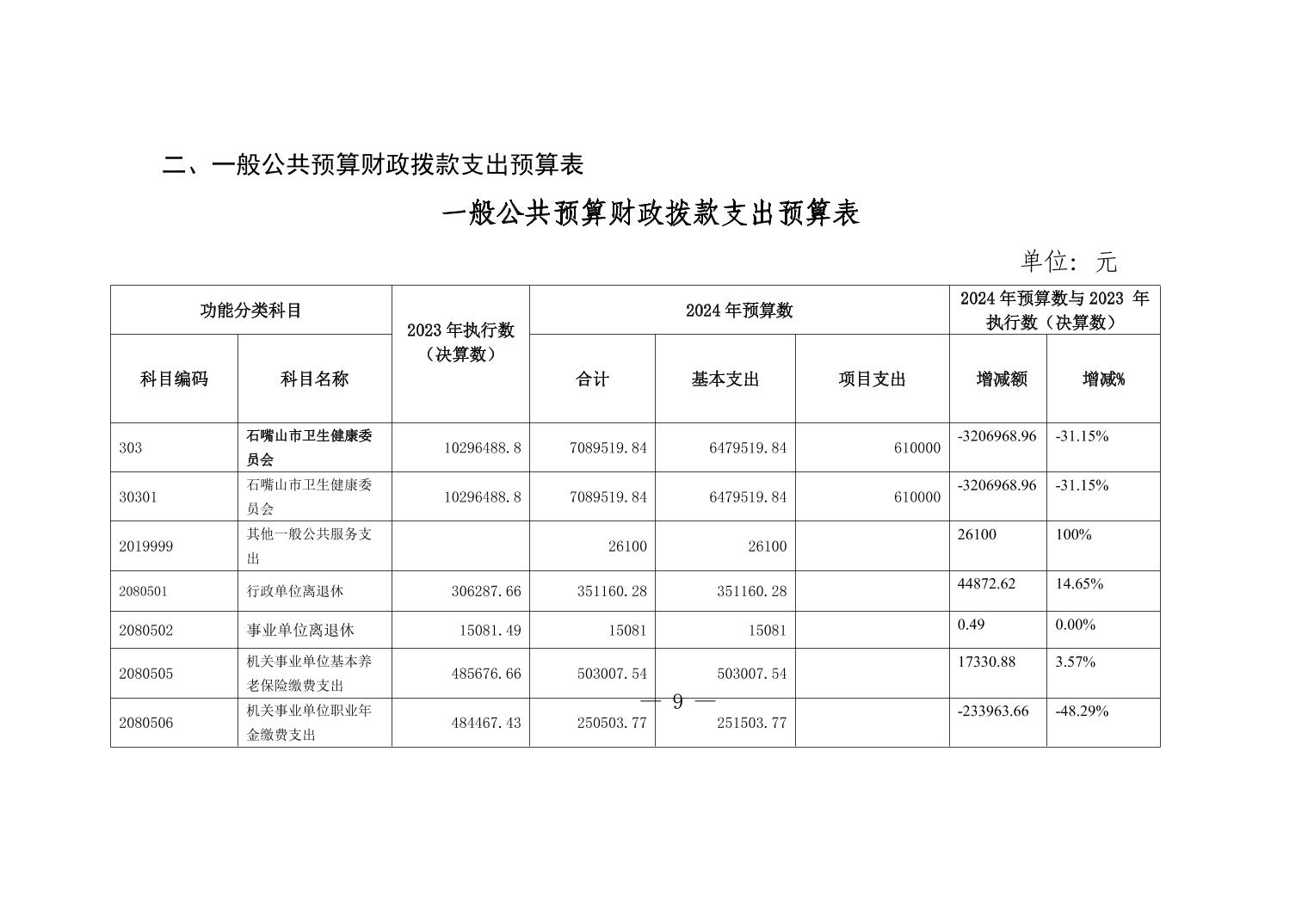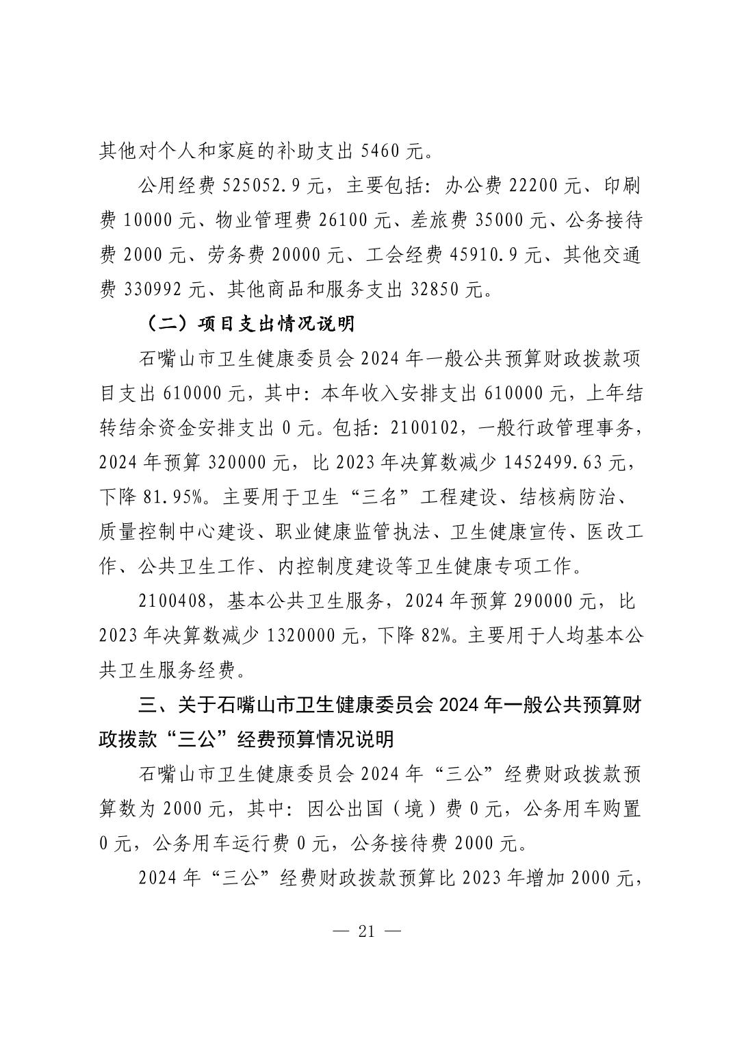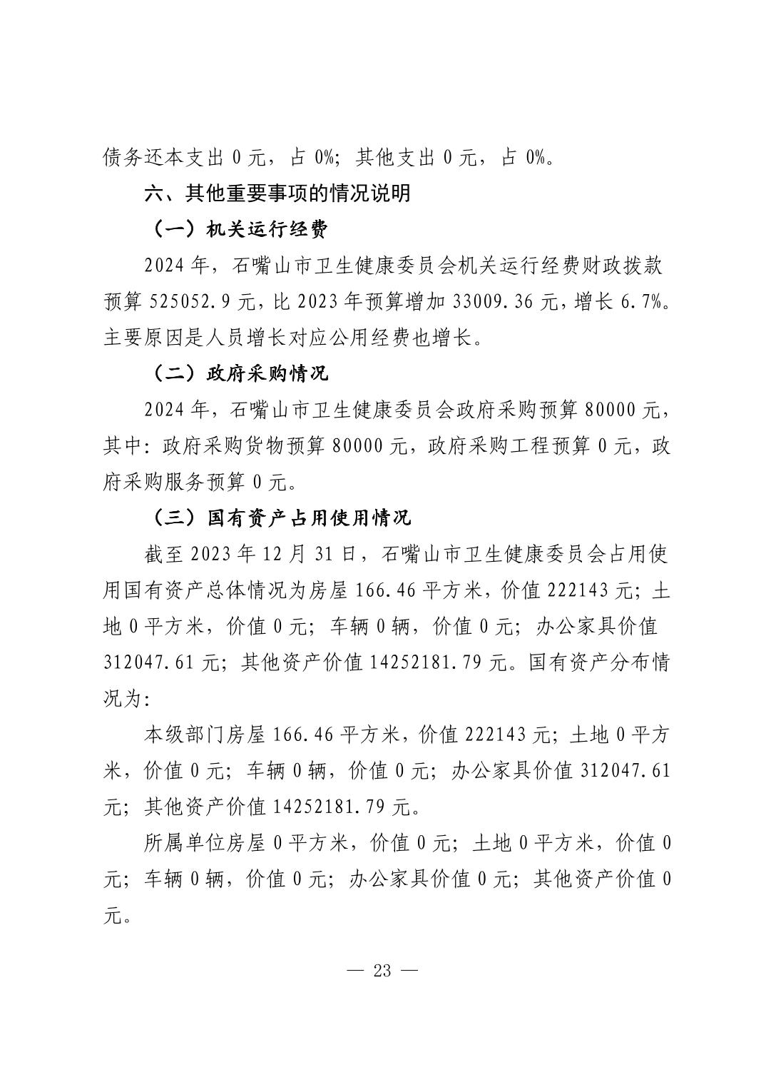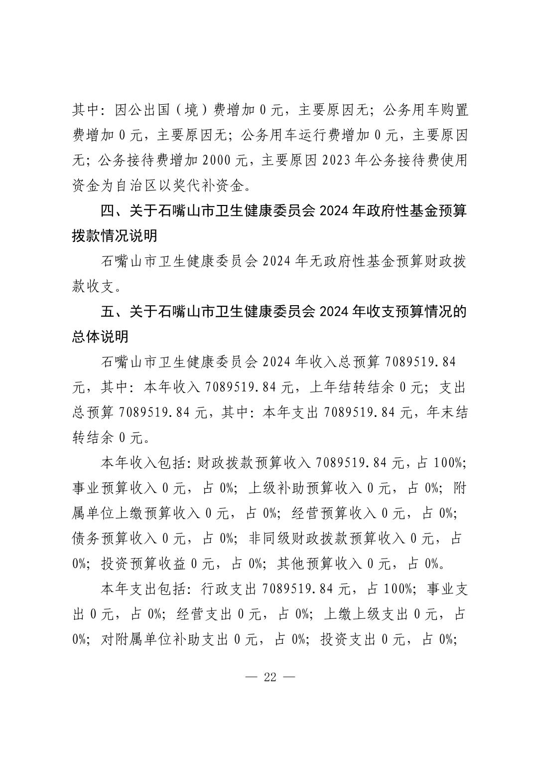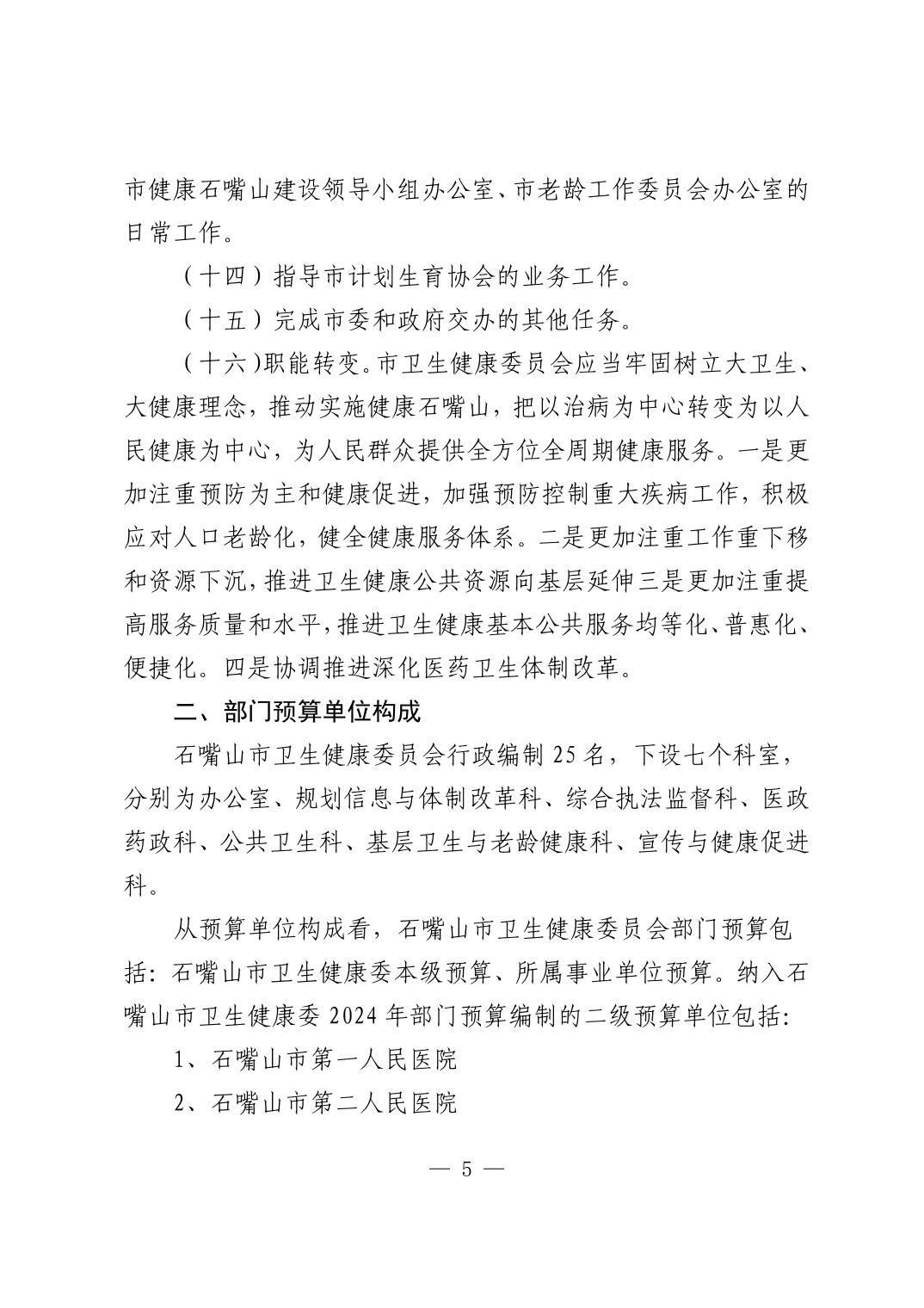 石嘴山市卫生健康委员会(市本级)2024年部门预算公开