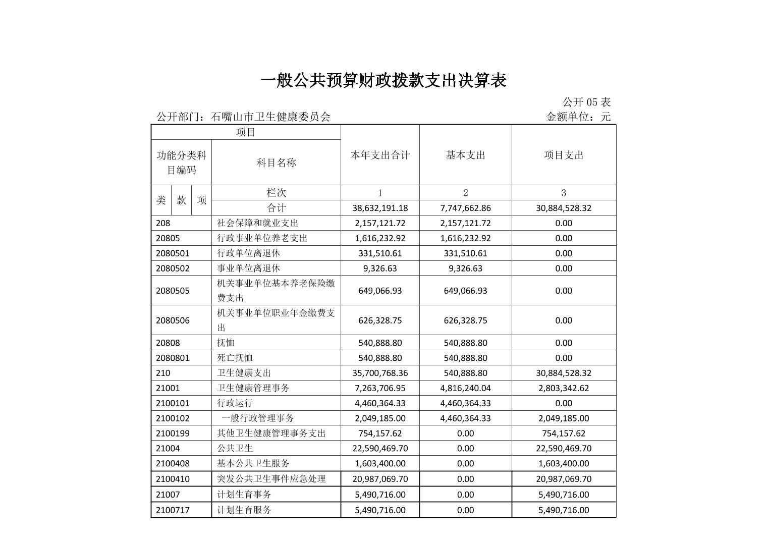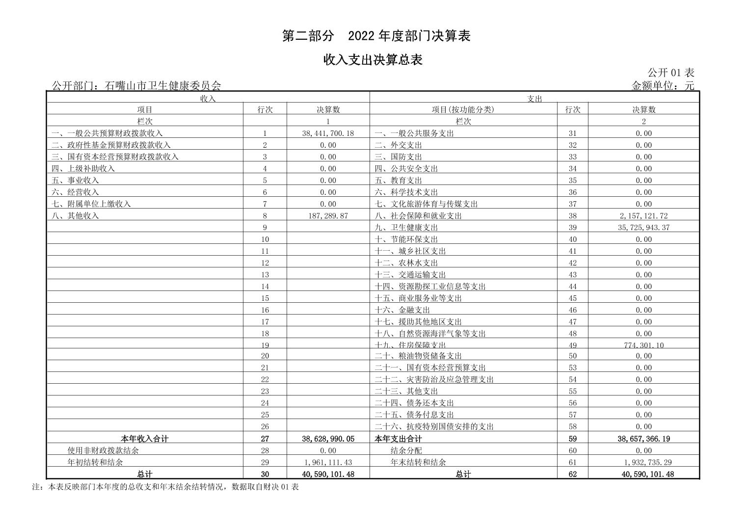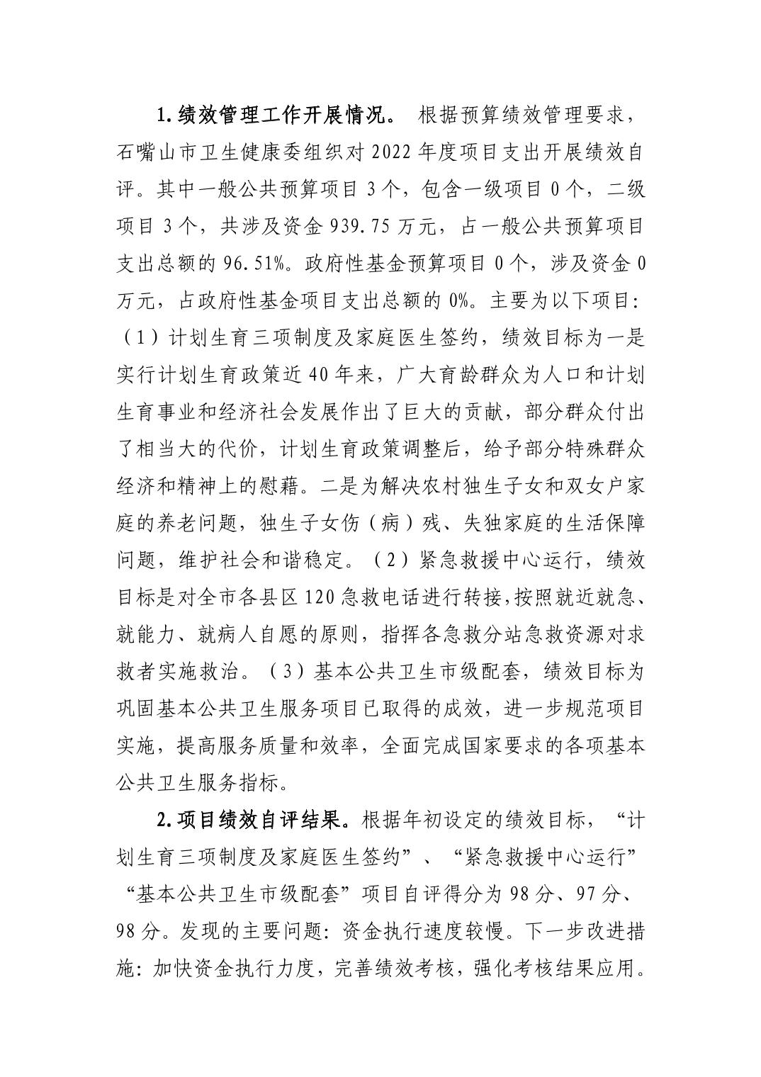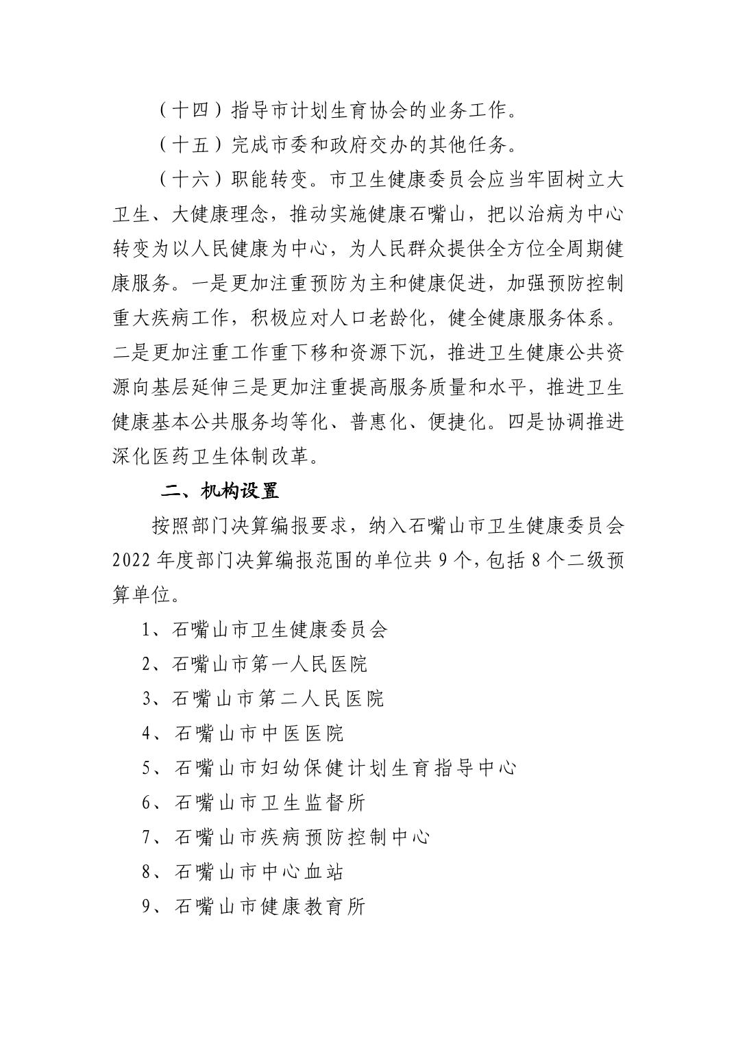 石嘴山市卫生健康委员会(市本级)2022年度部门决算公开