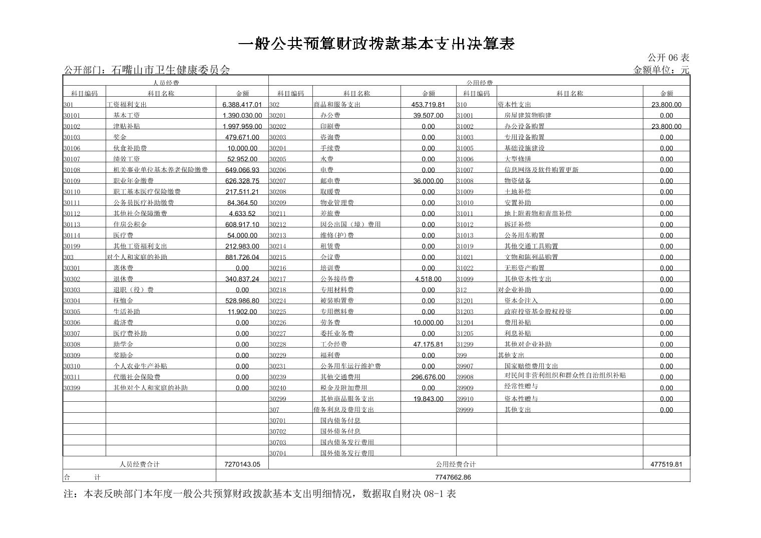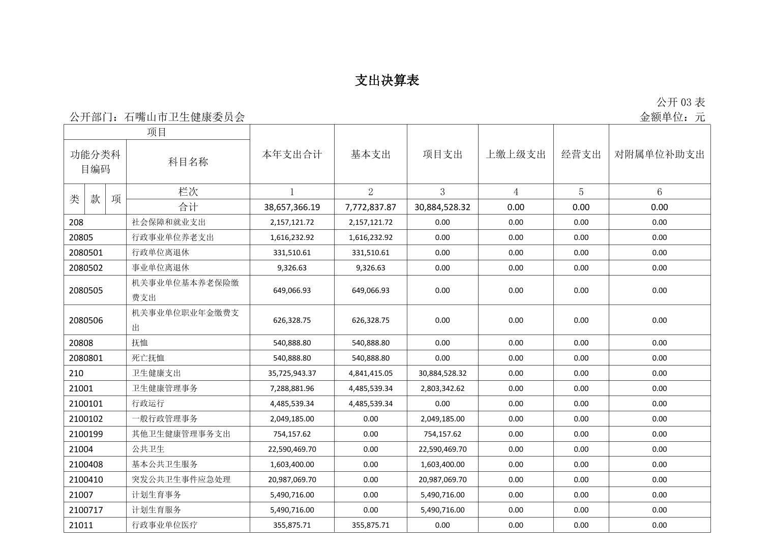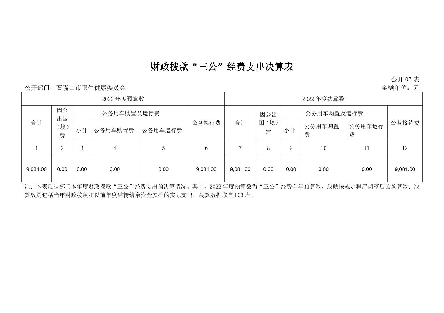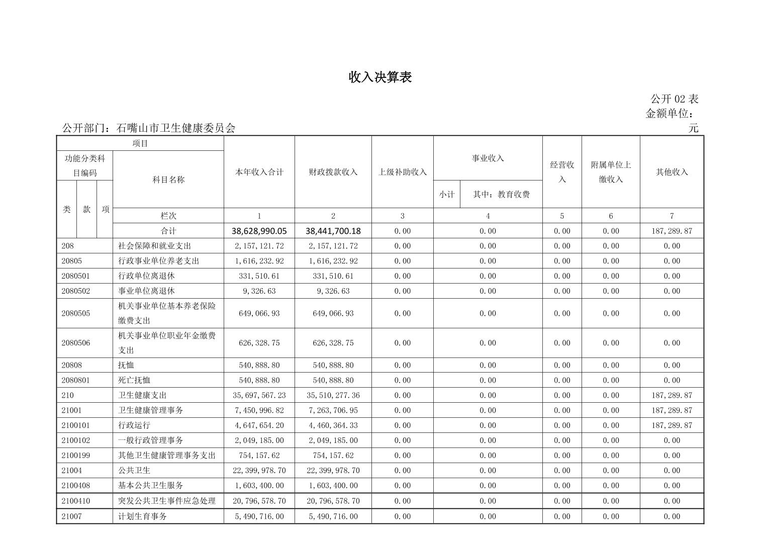 石嘴山市卫生健康委员会(市本级)2022年度部门决算公开