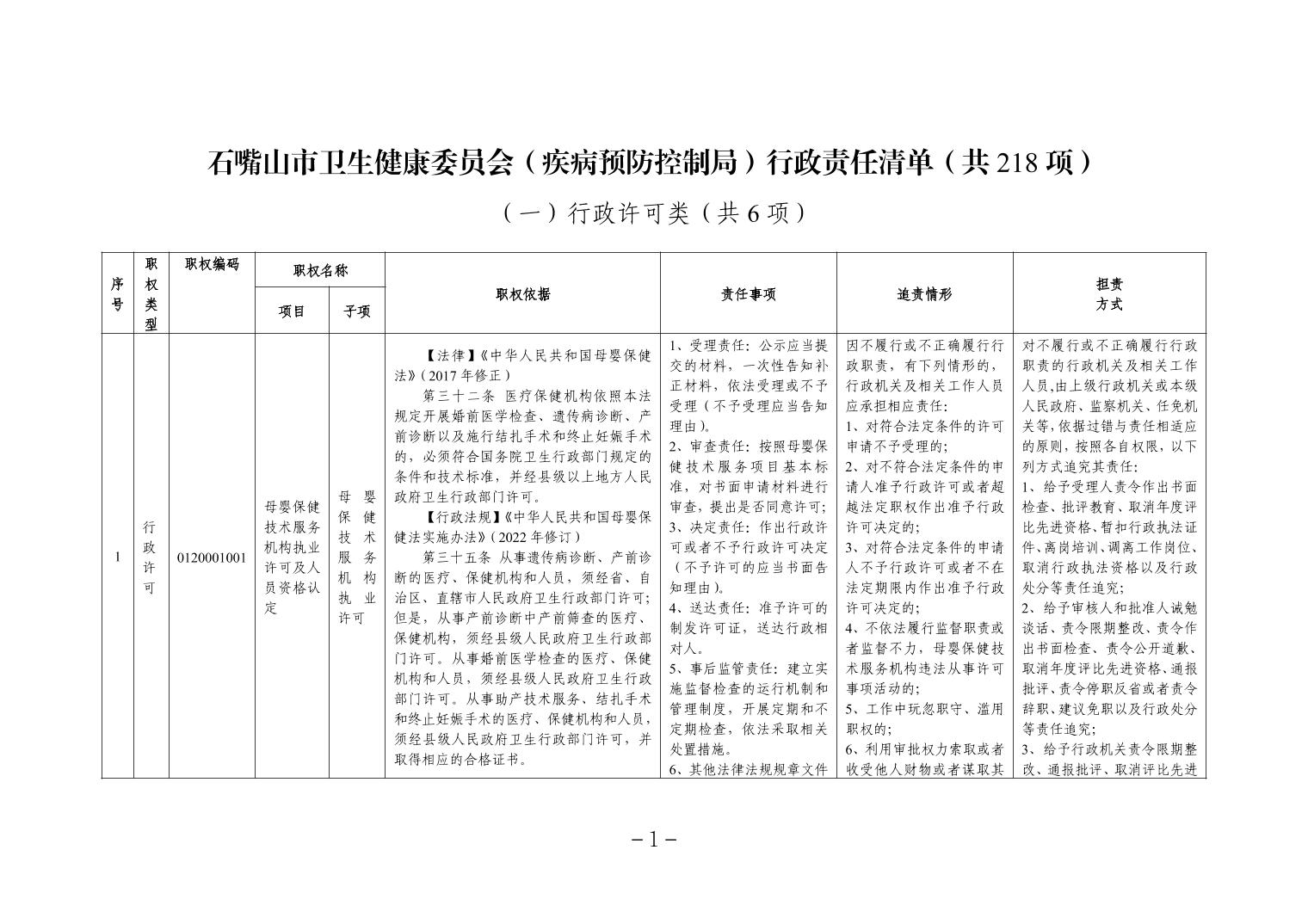 石嘴山市卫生健康委员会行政责任清单
