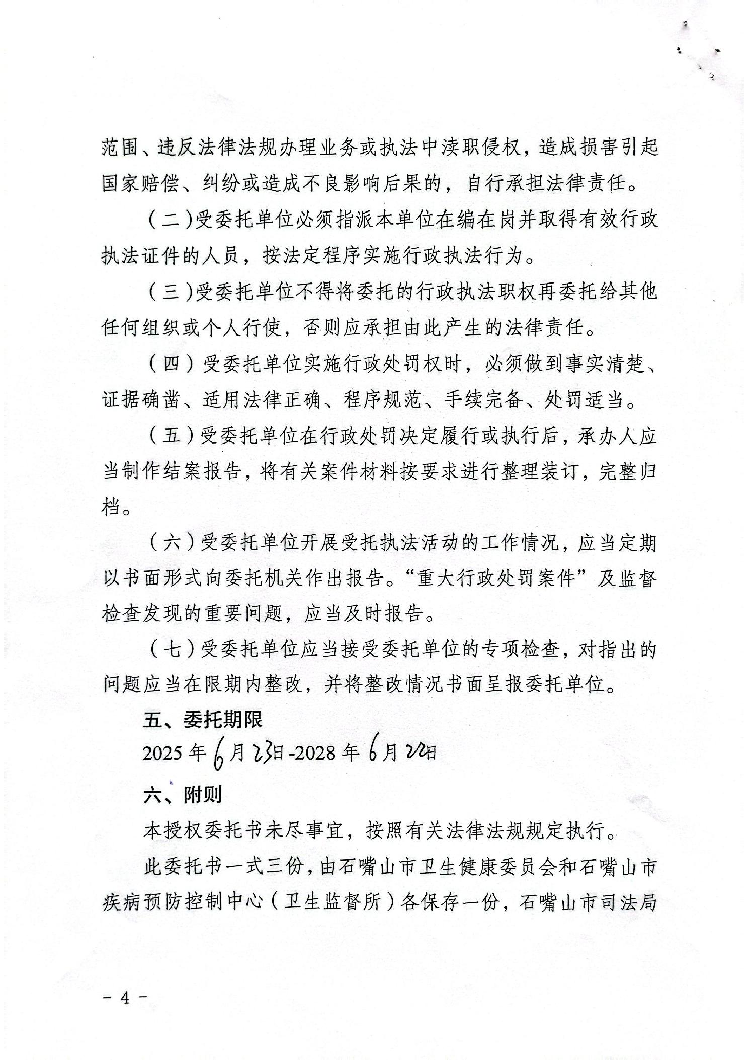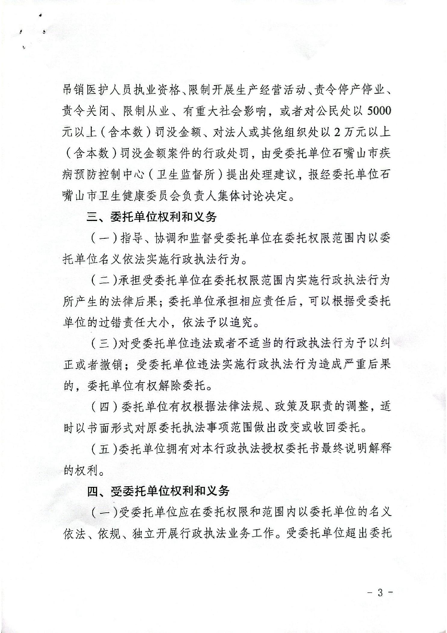 石嘴山市卫生健康行政执法授权委托书