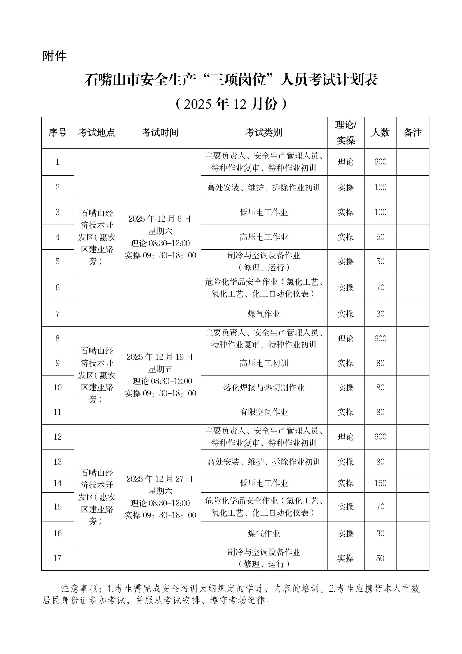 附件:石嘴山市安全生产“三项岗位”人员考试计划表(2025年12月份)