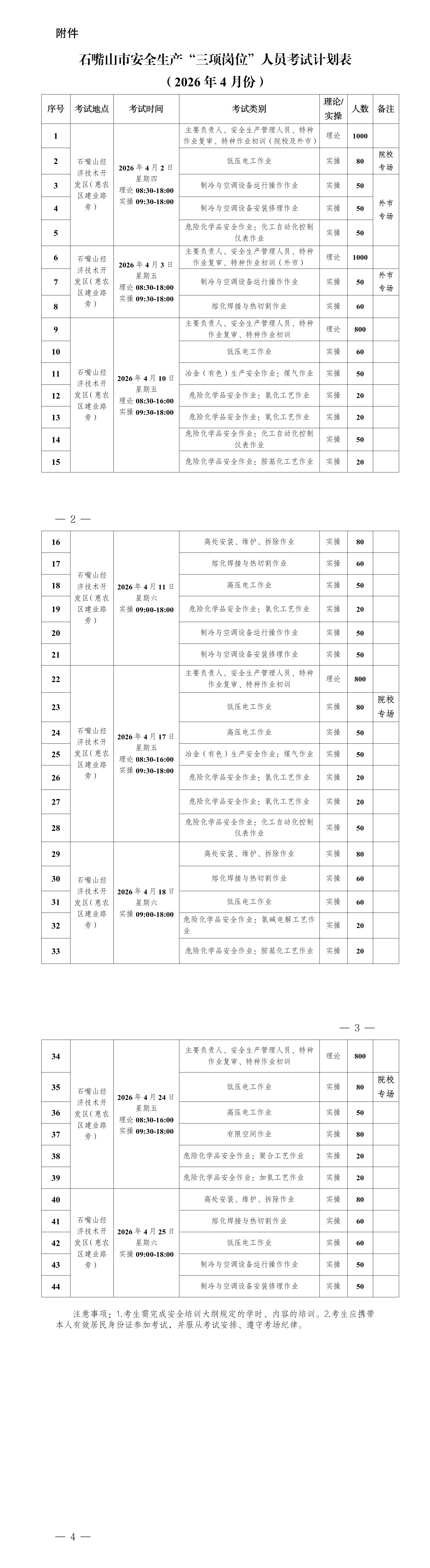 附件:石嘴山市安全生产“三项岗位”人员考试计划表(2026年4月份)