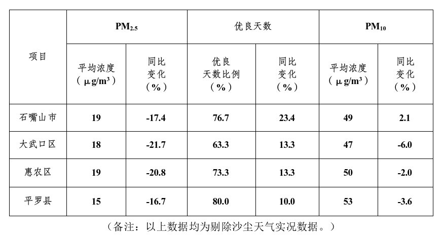 2025年6月石嘴山市及三县(区)环境空气质量主要指标