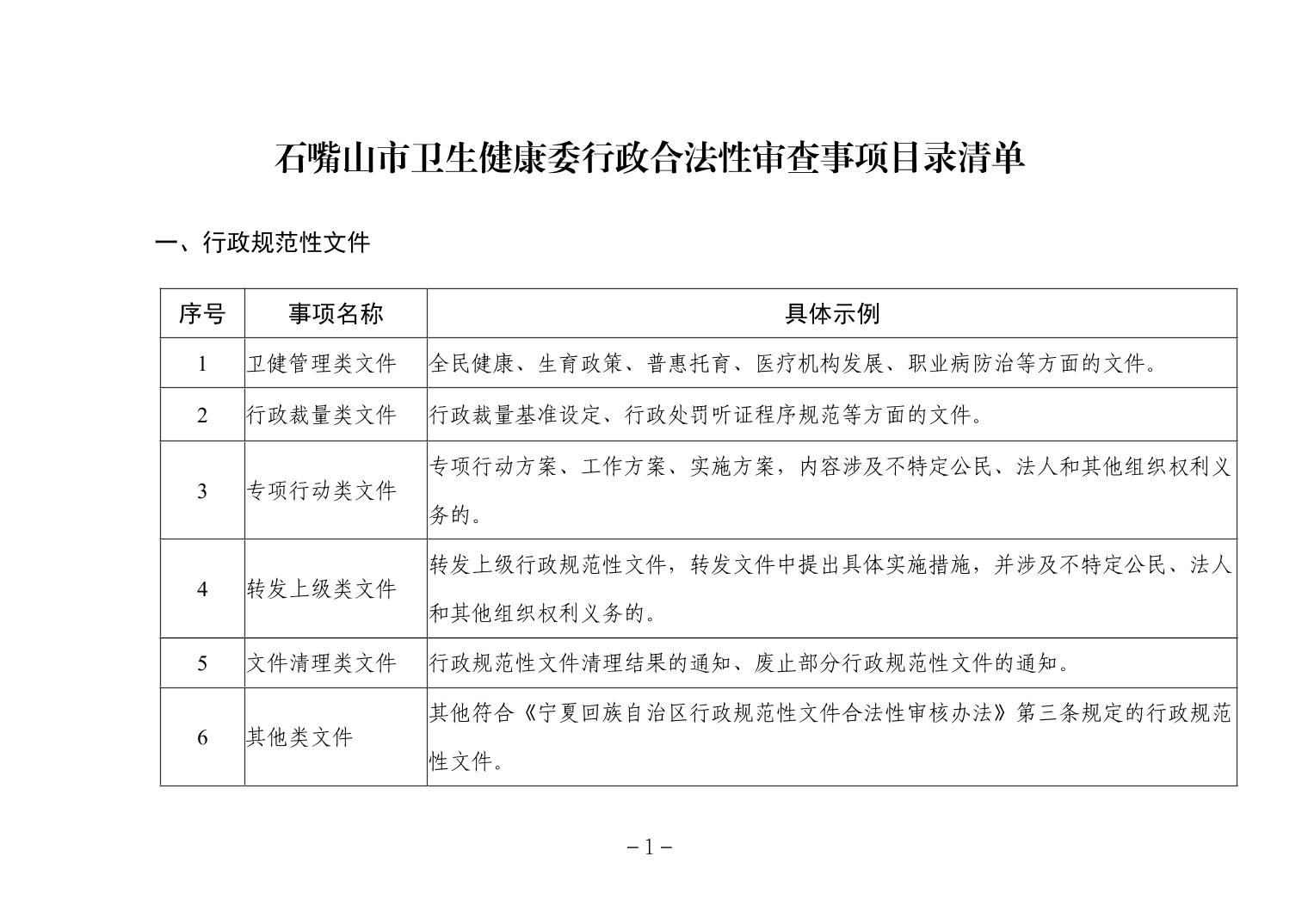石嘴山市卫生健康委行政合法性审查事项目录清单